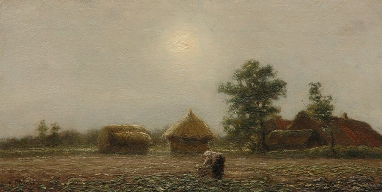 Evert Pieters kunstwerk • schilderij • voorheen te koop Boerin in een koolveld, Vlaanderen