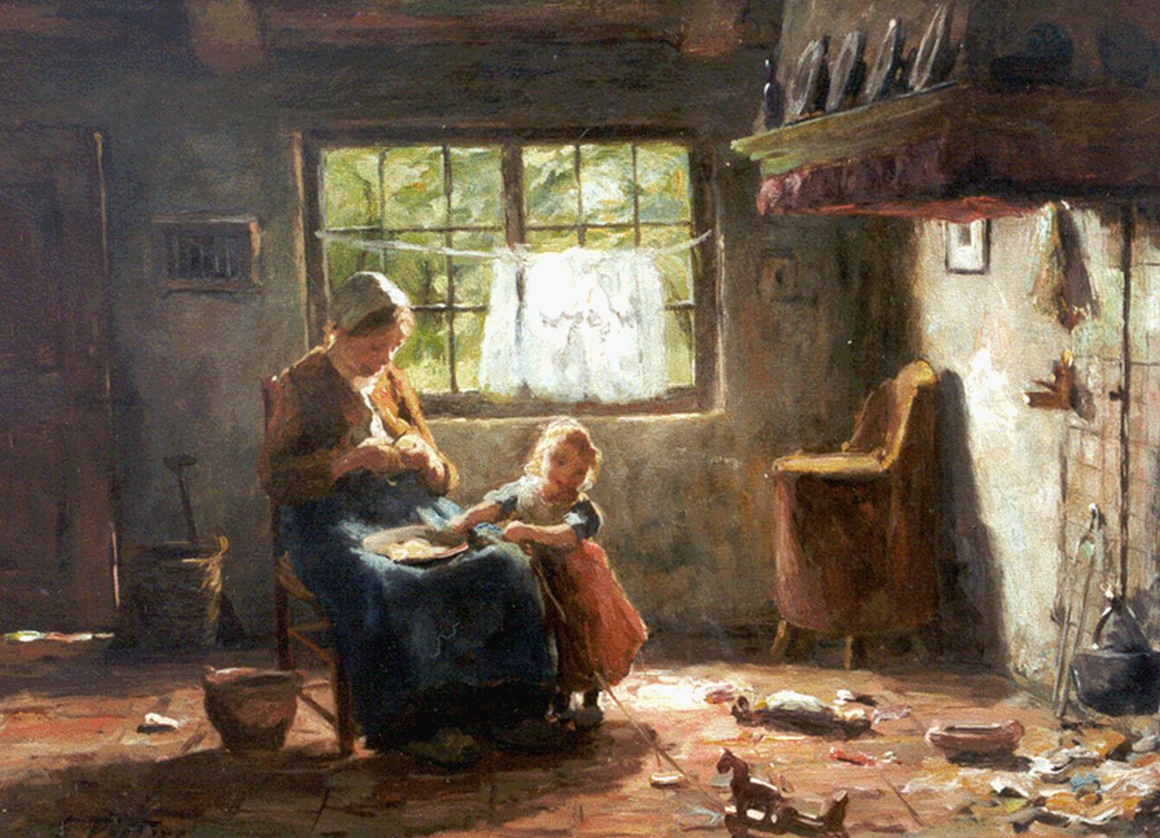 Evert Pieters kunstwerk • schilderij • voorheen te koop Interieur met moeder en kind