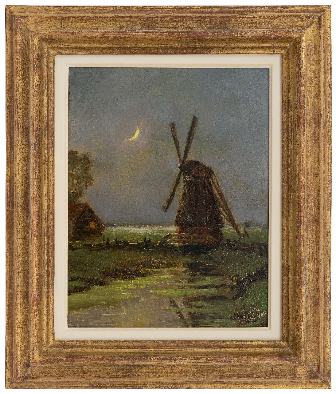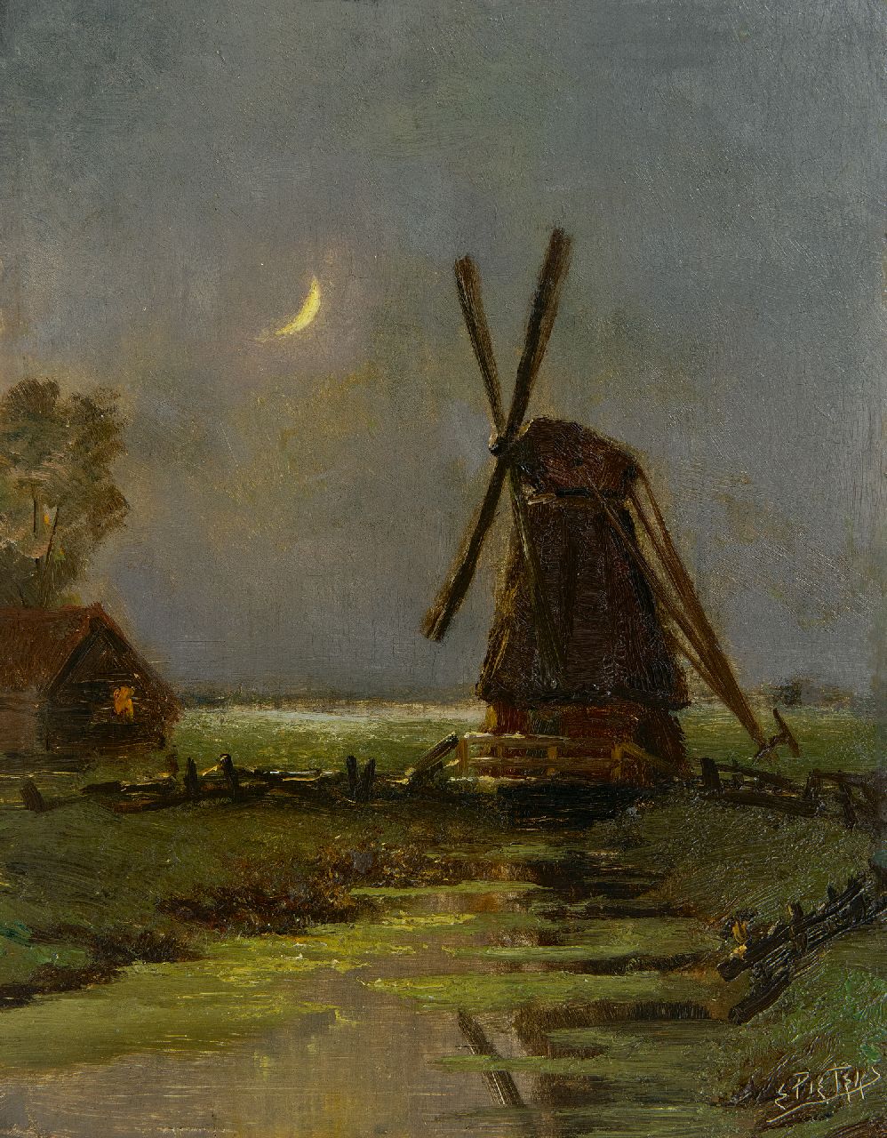 Evert Pieters kunstwerk • schilderij • te koop Molen bij nacht