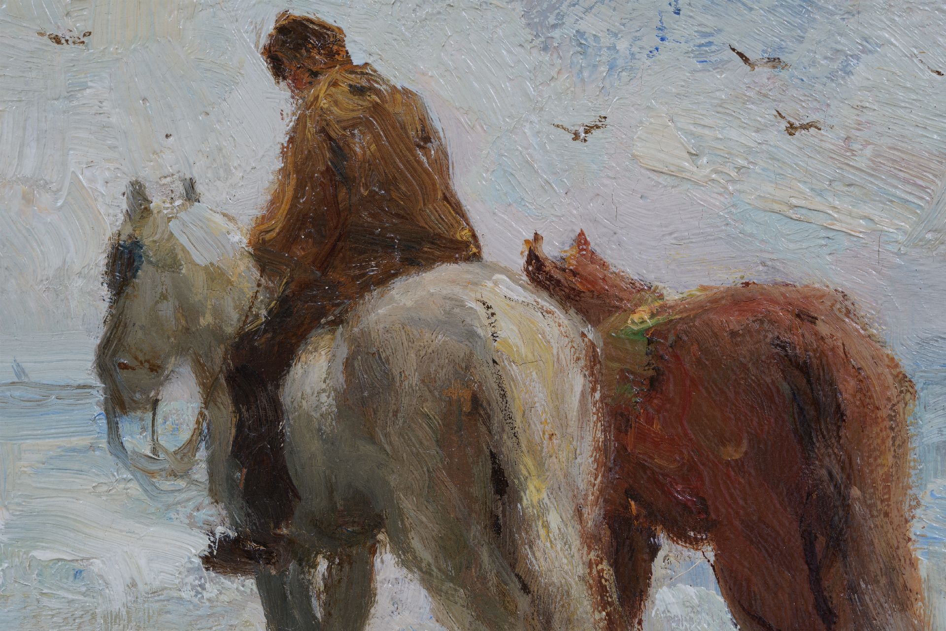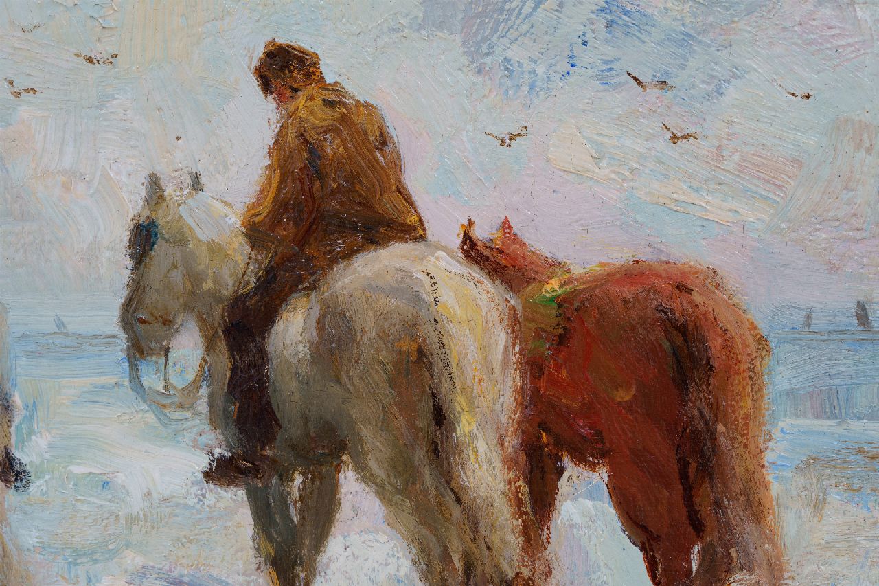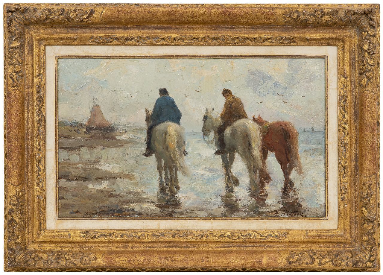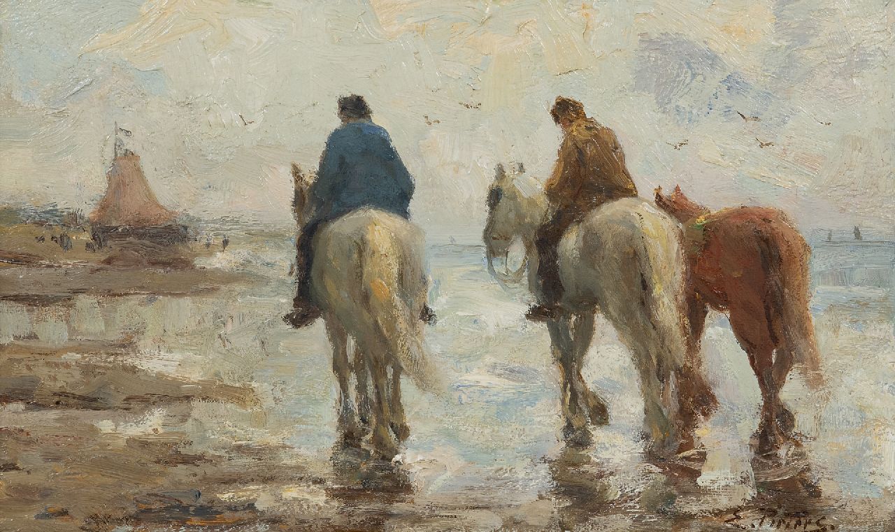 Evert Pieters kunstwerk • schilderij • voorheen te koop Strandgezicht met paarden, Katwijk