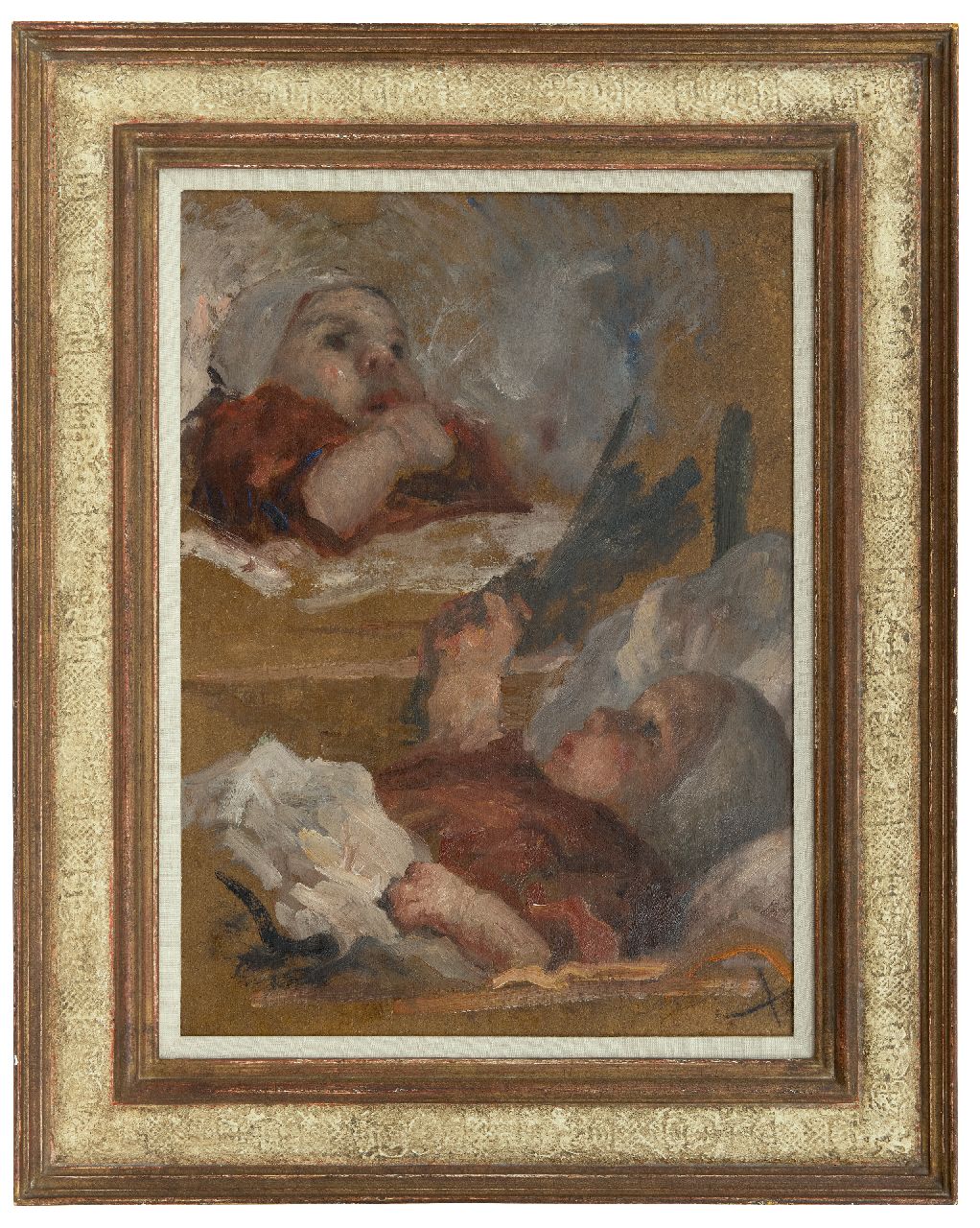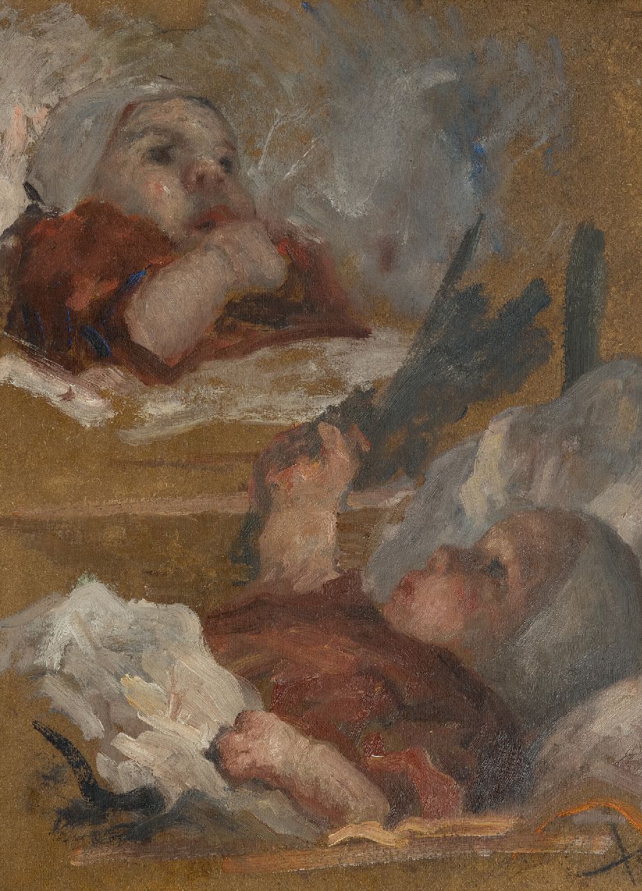 Evert Pieters kunstwerk • schilderij • te koop Studies van een baby; verso: jonge vrouw in tuin