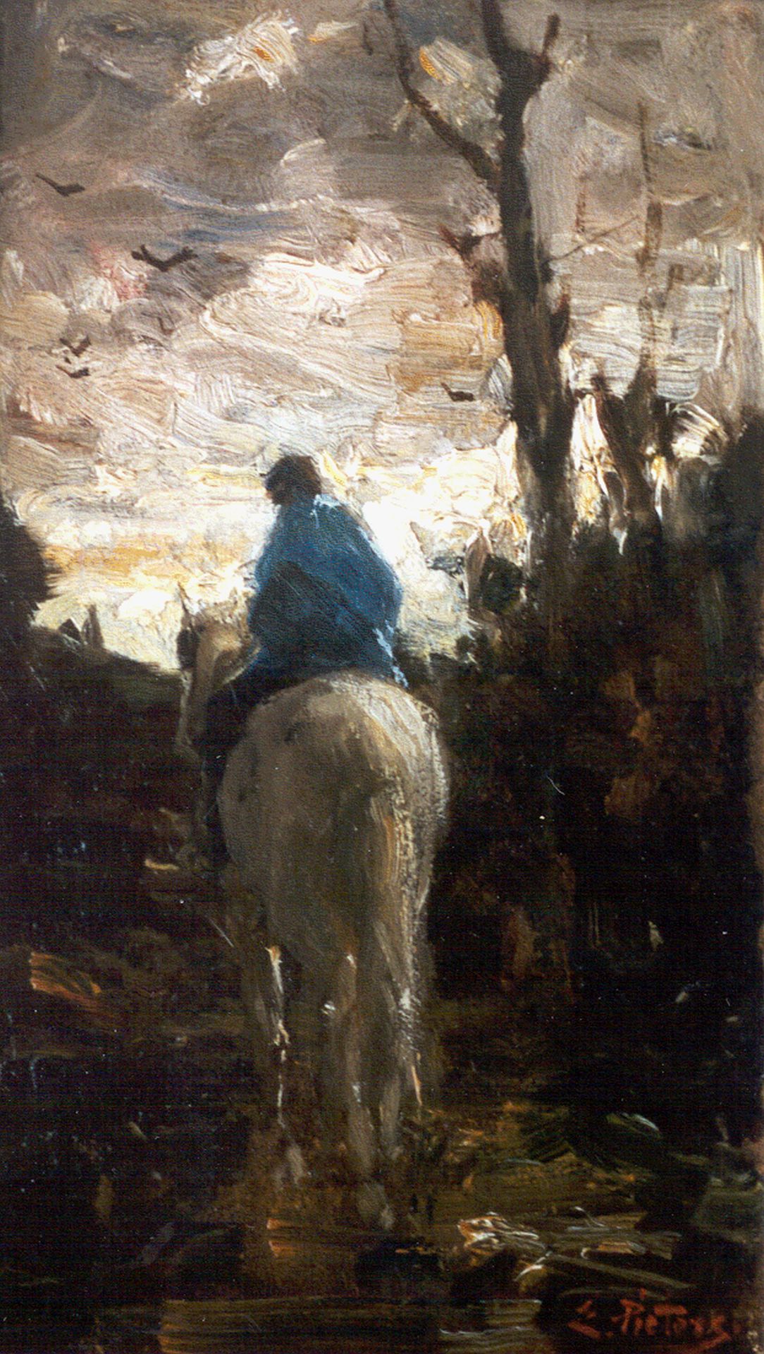 Evert Pieters kunstwerk • schilderij • voorheen te koop Trekpaard met ruiter op weg naar huis