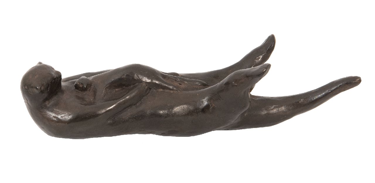Evert van Hemert kunstwerk • beeld • sculptuur • voorheen te koop Drijvende otter met jong
