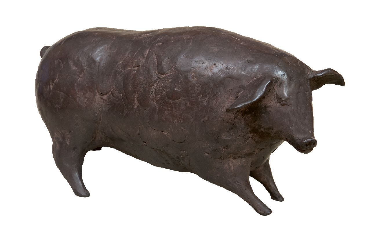 gepatineerd brons 14,0 x 30,0 cm, gesigneerd met monogram op buik en te dateren 2012