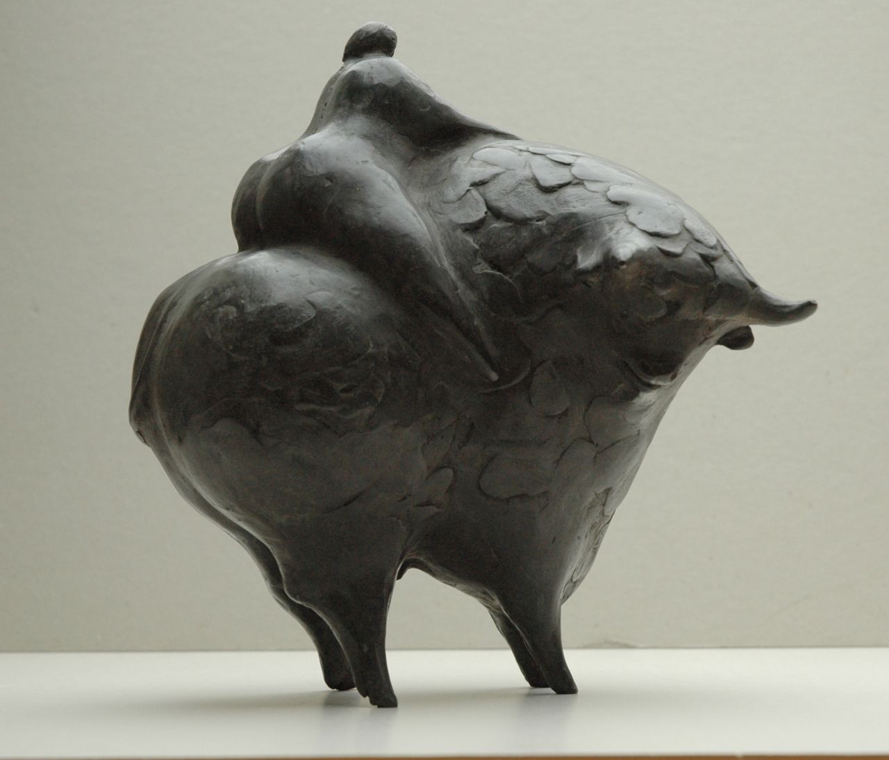 gepatineerd brons 25,1 x 21,3 cm, gesigneerd met monogram op buik en te dateren 2009