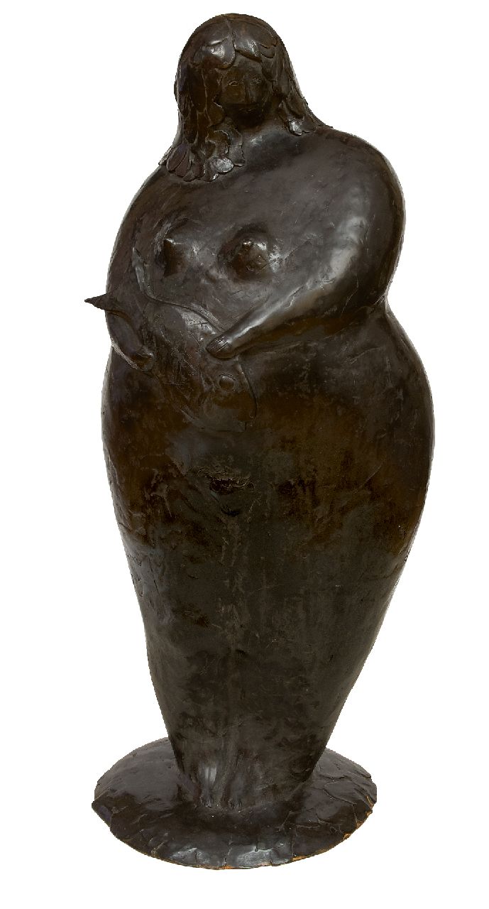 gepatineerd brons 90,0 x 33,0 cm, gesigneerd met monogram op achterkant basis en op de basis gedateerd 2005