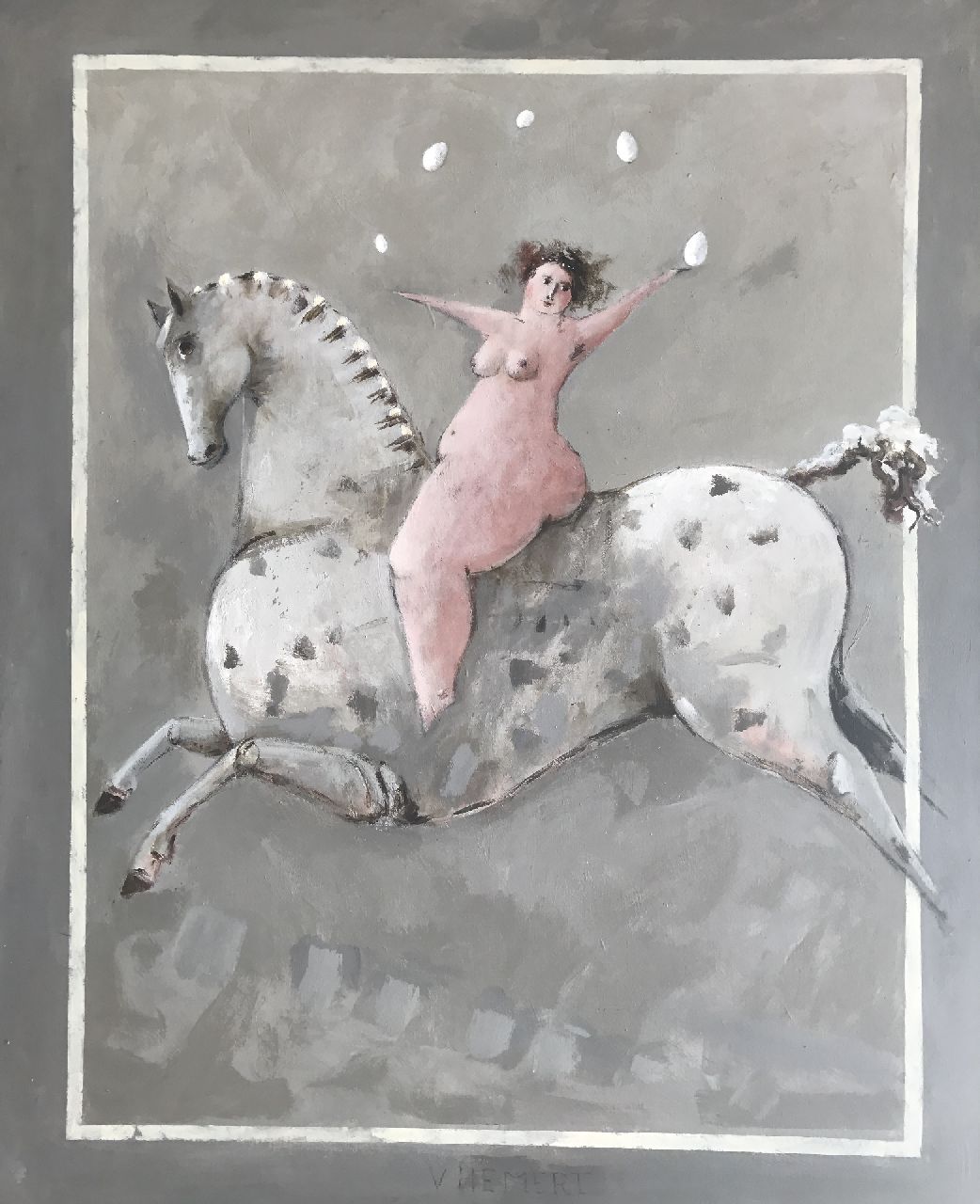 De schilder-beeldhouwer Evert van Hemert was bekend om zijn mollige vrouwenbeelden. Stevig en rond, met kleine gezichten en uitgevoerd in brons of verf, stralen ze een aardse vrolijkheid uit. Hetzelfde geldt voor zijn dieren, die variëren van klein zeehondje tot buitenmaatse kat. In zijn kunstenaarschap was Evert van Hemert uiterst gedreven en serieus. Zijn beelden zijn het resultaat van een langdurig proces. Dit begint met het vormen in was of klei, daarna het gieten, het schuren en slijpen, het patineren en tot slot het aanbrengen van de details. Daardoor worden zijn beelden persoonlijkheden, nauw verbonden met de mens die Evert was. Voor zijn schilderijen vond de kunstenaar inspiratie in zijn dagelijkse omgeving en in Friesland, waar hij zich in 1997 vestigde in het dorpje Kolderwolde. Thema’s als lucht, licht en leegte keren dan ook vaak terug in zijn schilderijen.