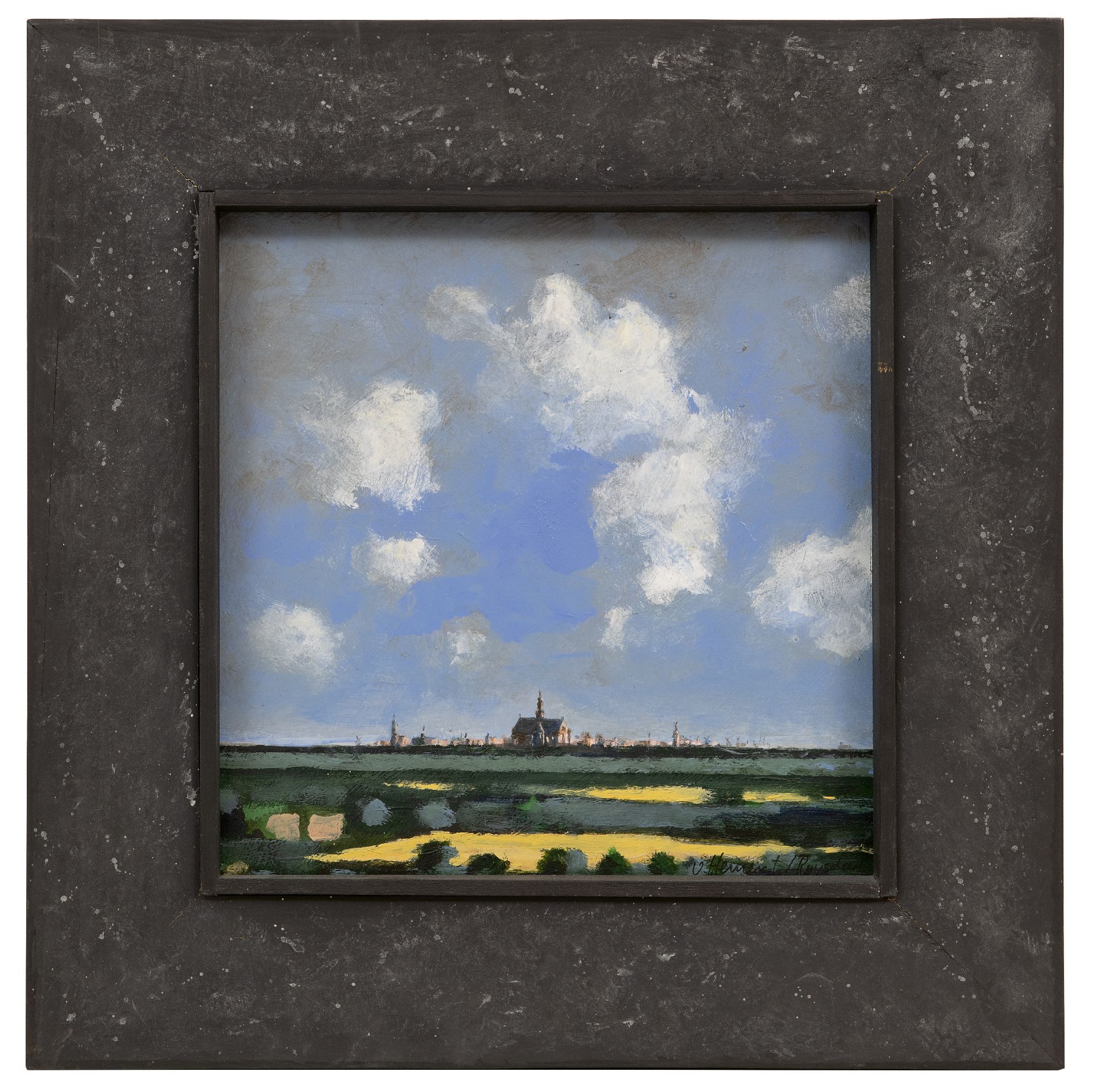 olieverf op board 29,0 x 29,0 cm, gesigneerd rechtsonder 'v. Hemert/Ruysdael' en gedateerd 2016