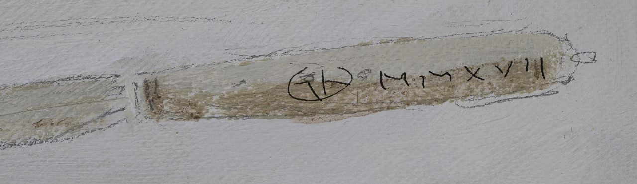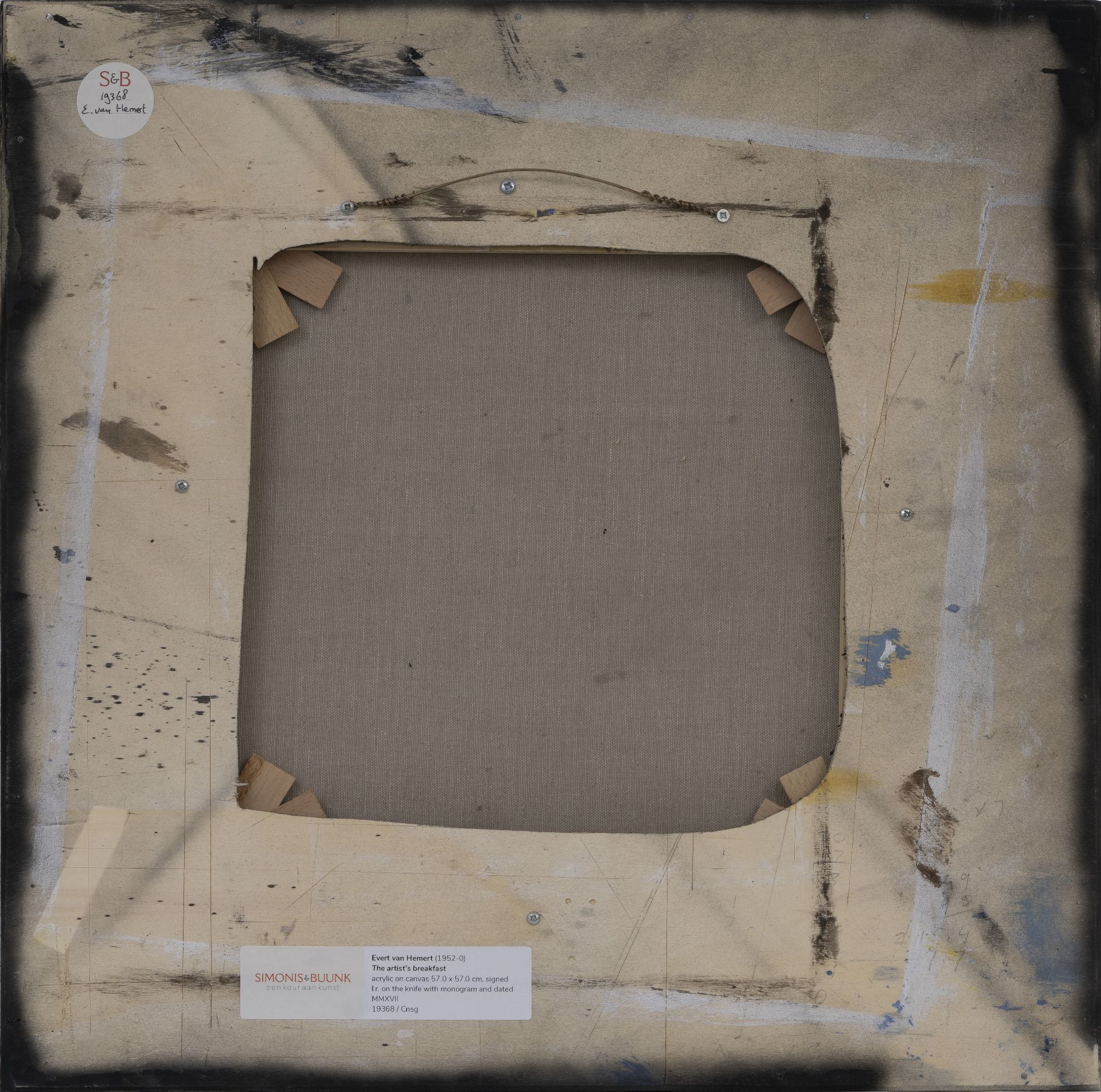acryl op doek 57,0 x 57,0 cm, gesigneerd rechtsonder op mes met monogram en gedateerd MMXVII