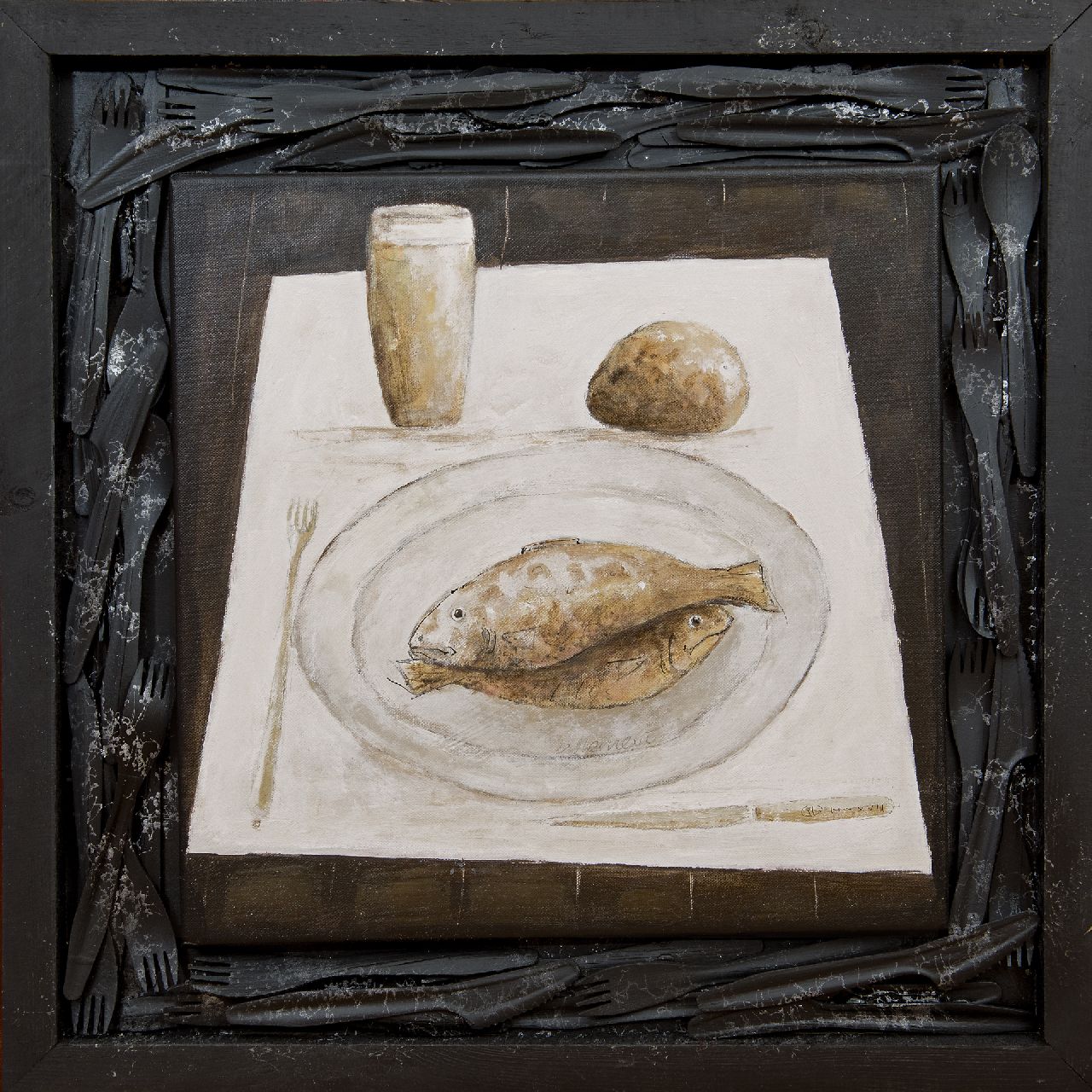 Evert van Hemert kunstwerk • schilderij • voorheen te koop Het kunstenaarsontbijt