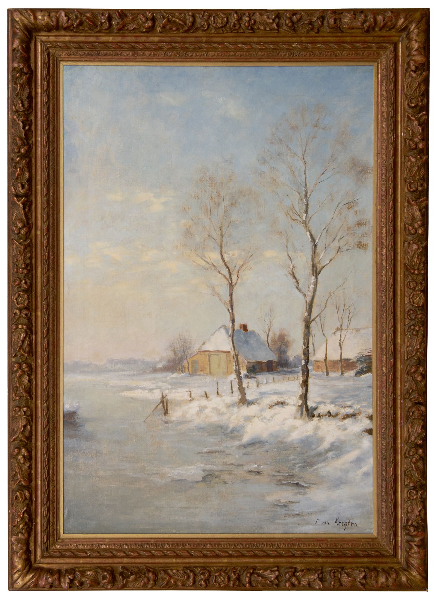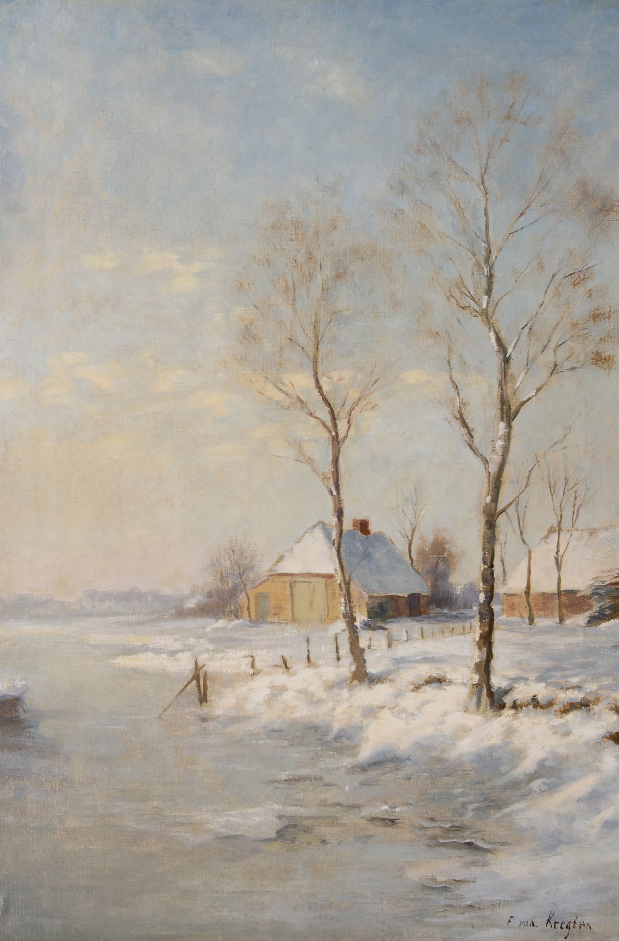 Fedor van Kregten kunstwerk • schilderij • te koop Boerderij in sneeuwlandschap