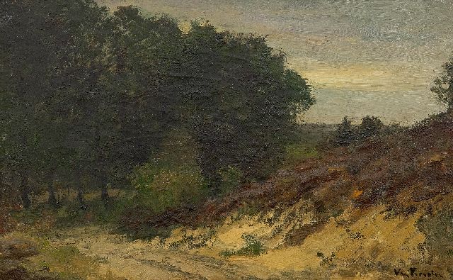De autodidact Fedor van Kregten had vanaf het begin van zijn kunstenaarsloopbaan een uitgesproken voorkeur voor het schilderen van de natuur en het landschap. Zijn eerste werkgebieden waren Drenthe en Overijssel, daarna schilderde hij veel in Twente. Behalve de uitgestrekte Drentse heidevelden waren met name landschappen met koeien en kalveren een geliefd onderwerp van de schilder. Ook wijdde hij zich graag aan plant- en dierstudies. Van Kregten was geen plein-airschilder. De schetsen die hij in de natuur maakte werkte hij doorgaans in zijn atelier uit. Bekend is dat hij een nogal teruggetrokken bestaan leidde, weinig contacten had met collega's en niet lid was van een kunstenaarsvereniging. Wellicht waren zijn vele verhuizingen en een kinderrijk gezin hier mede de oorzaak van.