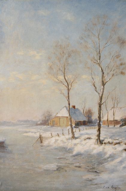 De autodidact Fedor van Kregten had vanaf het begin van zijn kunstenaarsloopbaan een uitgesproken voorkeur voor het schilderen van de natuur en het landschap. Zijn eerste werkgebieden waren Drenthe en Overijssel, daarna schilderde hij veel in Twente. Behalve de uitgestrekte Drentse heidevelden waren met name landschappen met koeien en kalveren een geliefd onderwerp van de schilder. Ook wijdde hij zich graag aan plant- en dierstudies. Van Kregten was geen plein-airschilder. De schetsen die hij in de natuur maakte werkte hij doorgaans in zijn atelier uit. Bekend is dat hij een nogal teruggetrokken bestaan leidde, weinig contacten had met collega's en niet lid was van een kunstenaarsvereniging. Wellicht waren zijn vele verhuizingen en een kinderrijk gezin hier mede de oorzaak van.