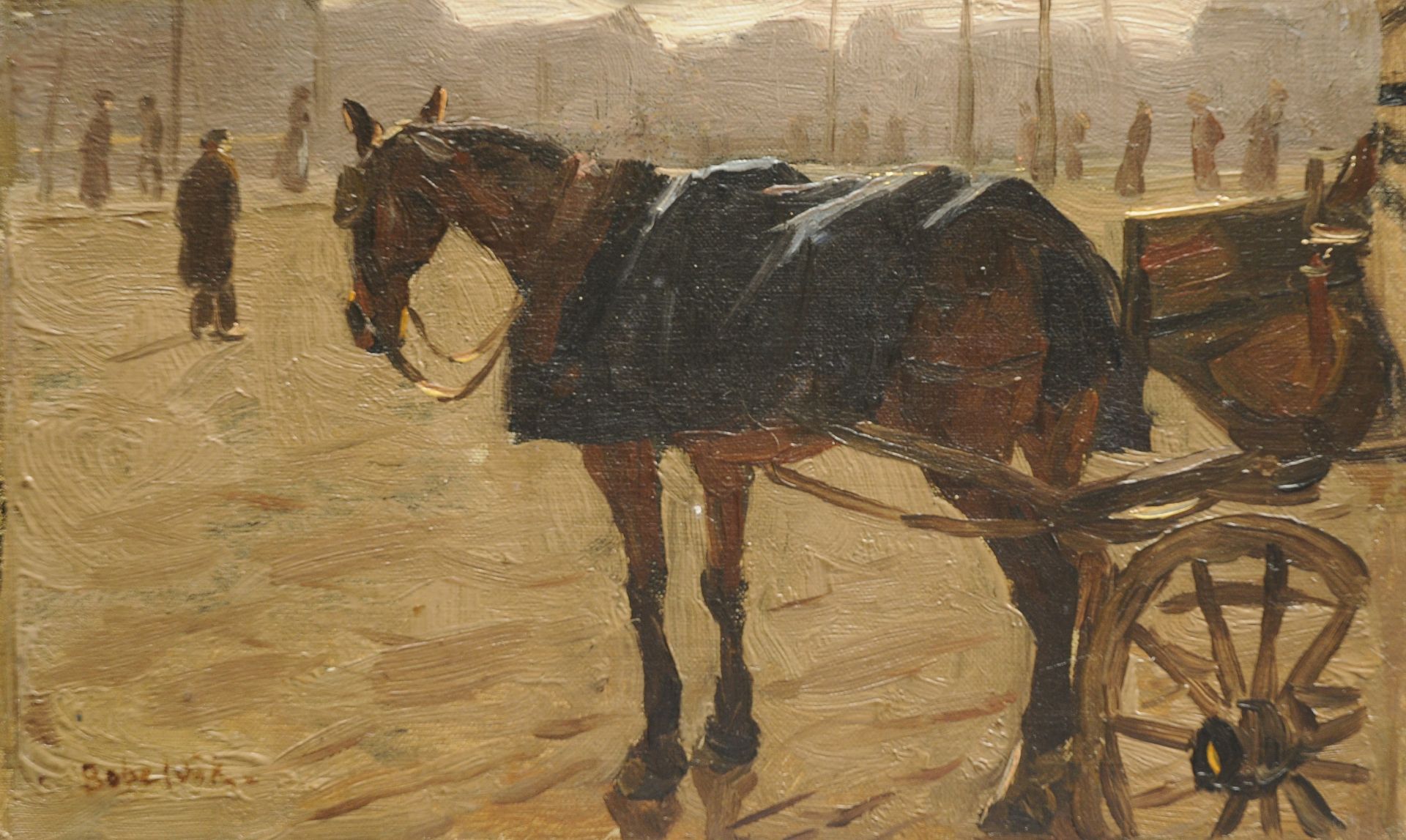 Felicien Bobeldijk kunstwerk • schilderij • voorheen te koop Wachtend paard met koets