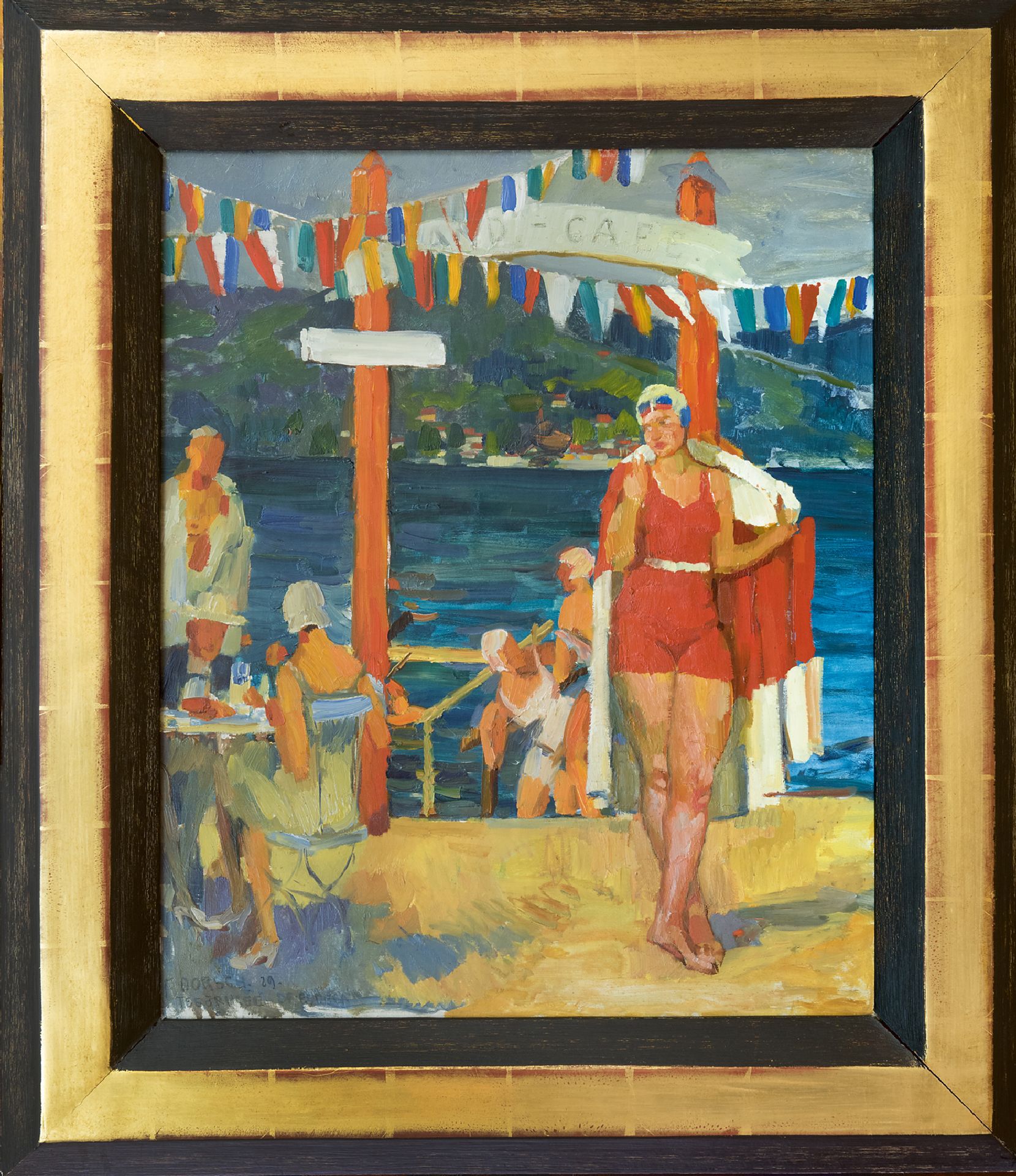 Ferdinand Dorsch kunstwerk • schilderij • voorheen te koop Strandcafé aan de Tegernsee, Zuid-Duitsland