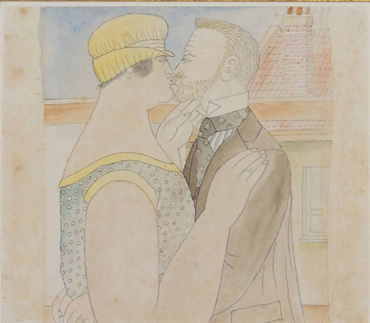 Ferdinand Erfmann kunstwerk • aquarel • tekening • te koop Kus op het dak