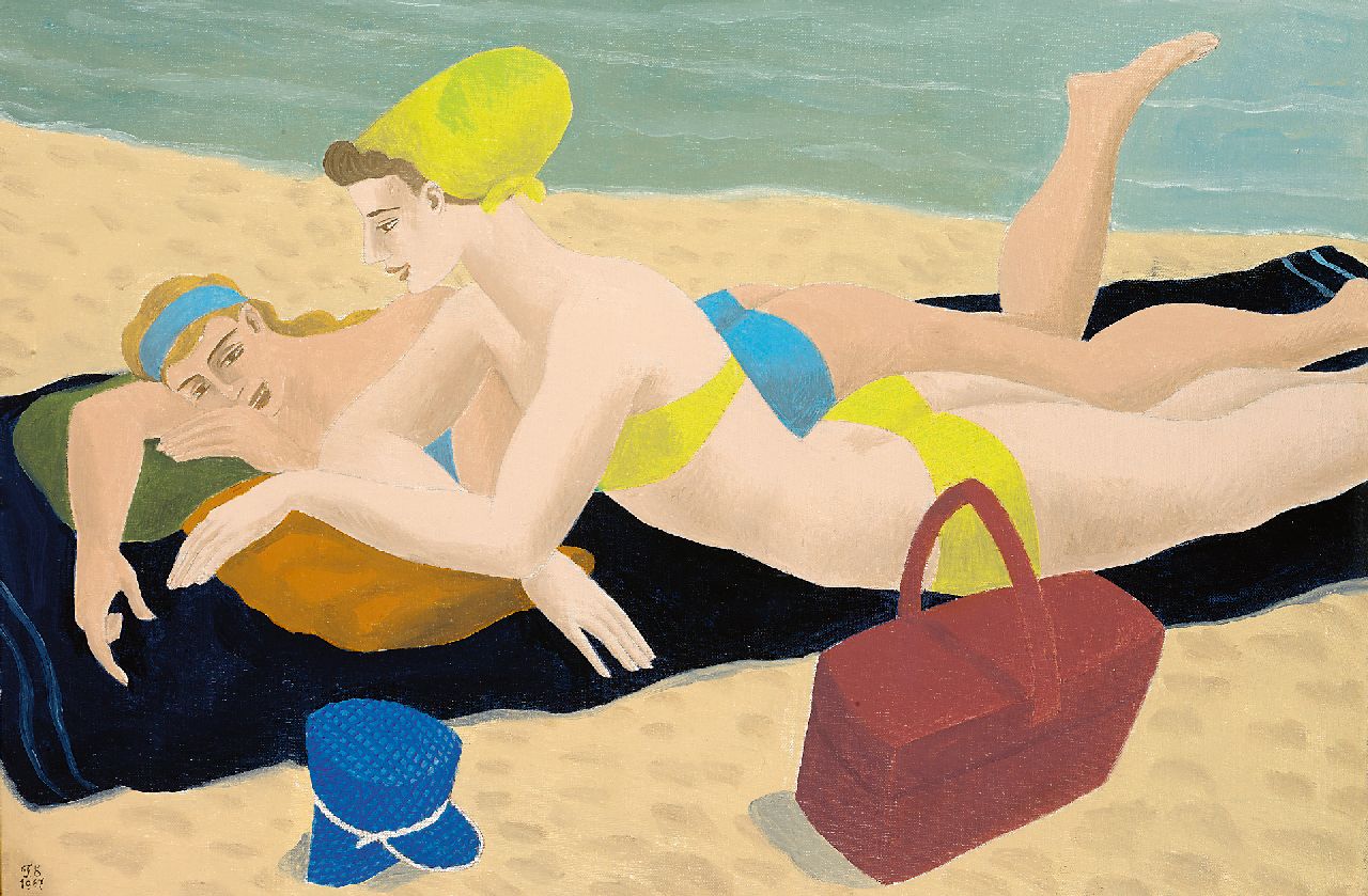 Ferdinand Erfmann kunstwerk • schilderij • voorheen te koop Zonnebaden op het strand