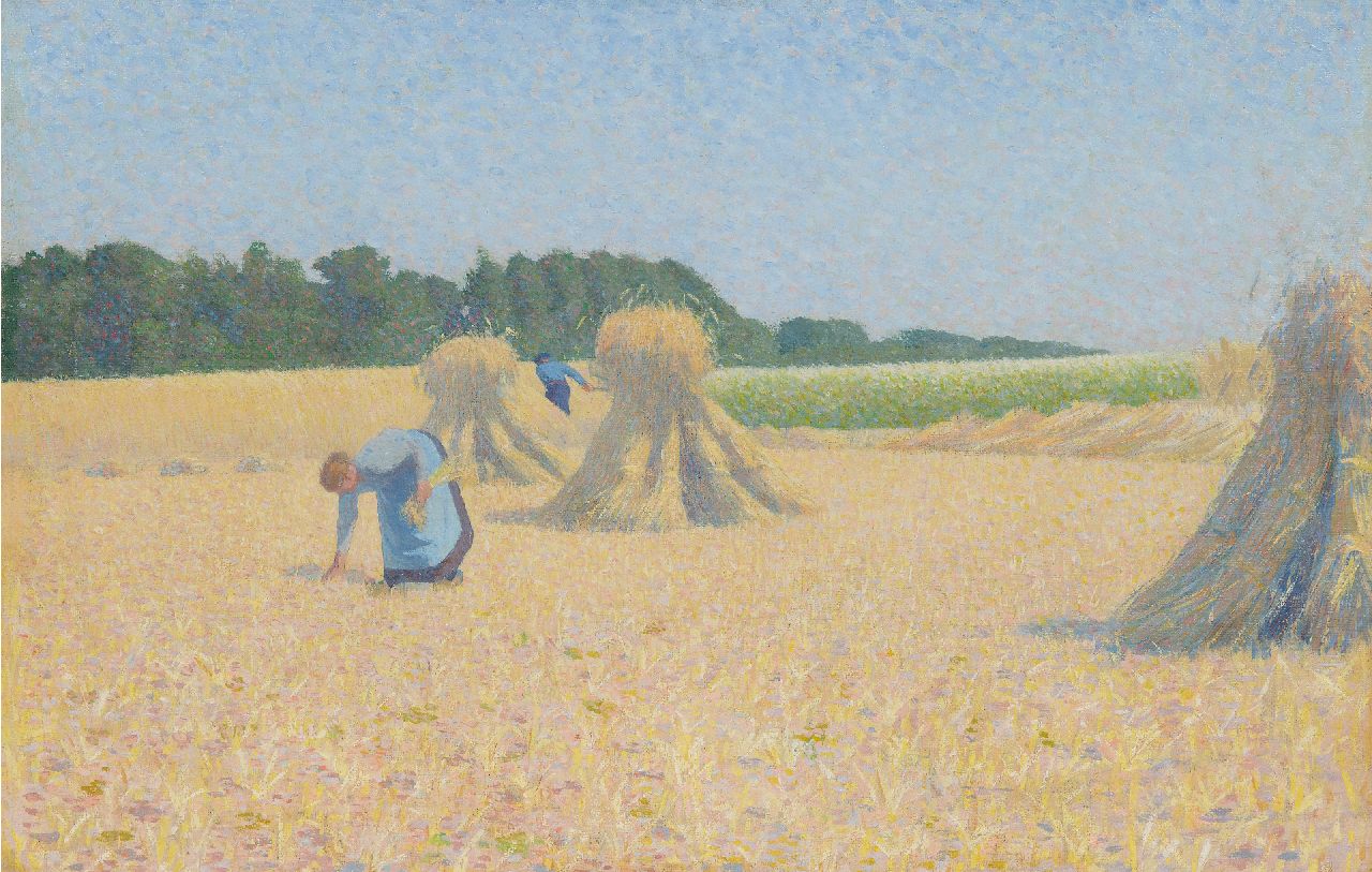 Ferdinand Hart Nibbrig | Korenveld met arenlezende vrouw, olieverf op doek, 39,2 x 60,4 cm, te dateren ca. 1900