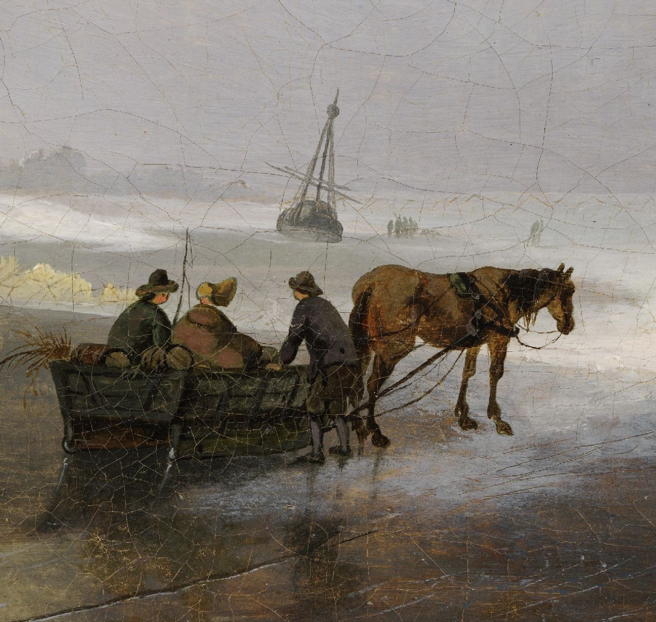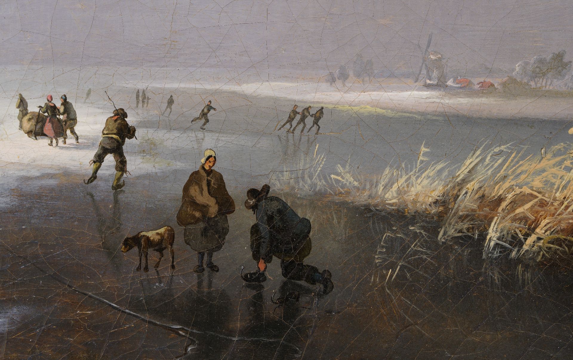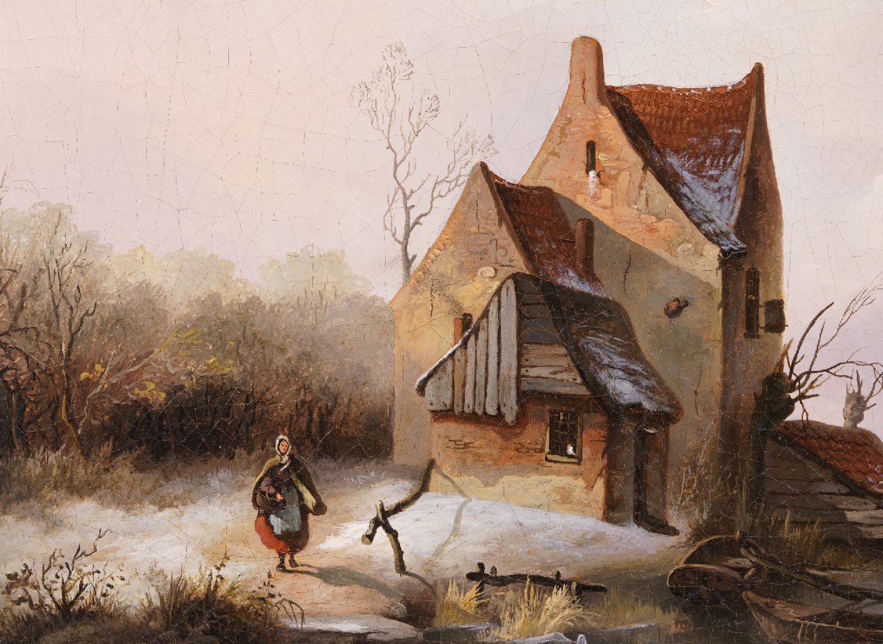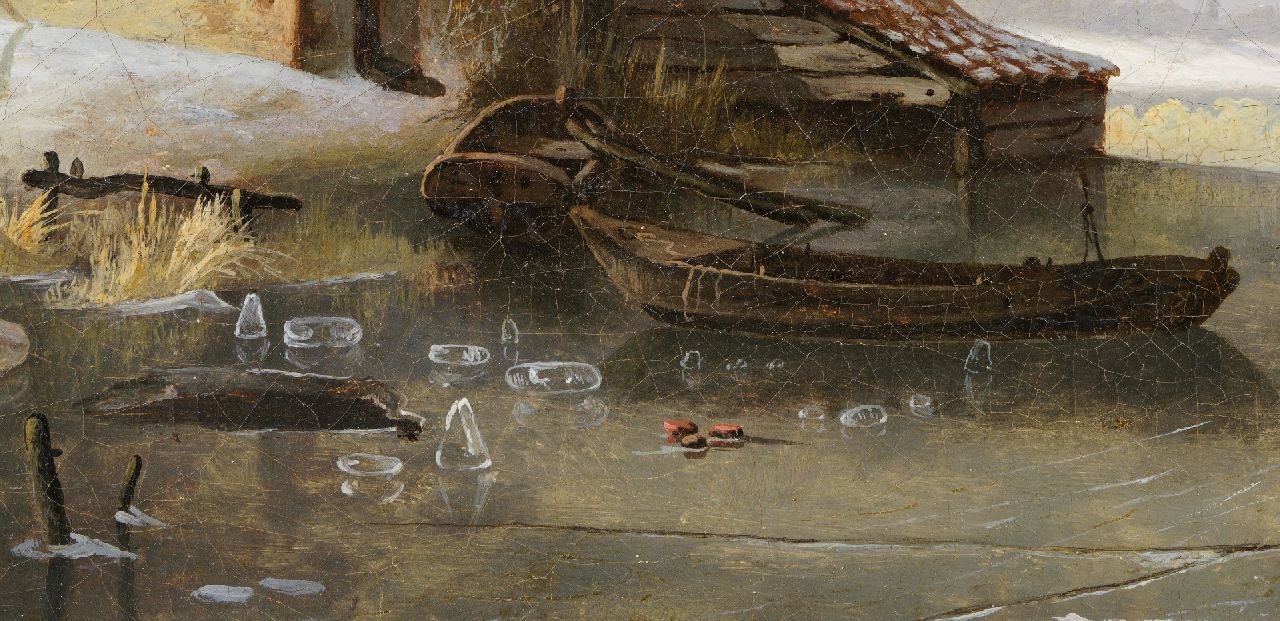 Ferdinand Hendrik Sijpkens kunstwerk • schilderij • te koop Bevroren rivierlandschap met schaatsers