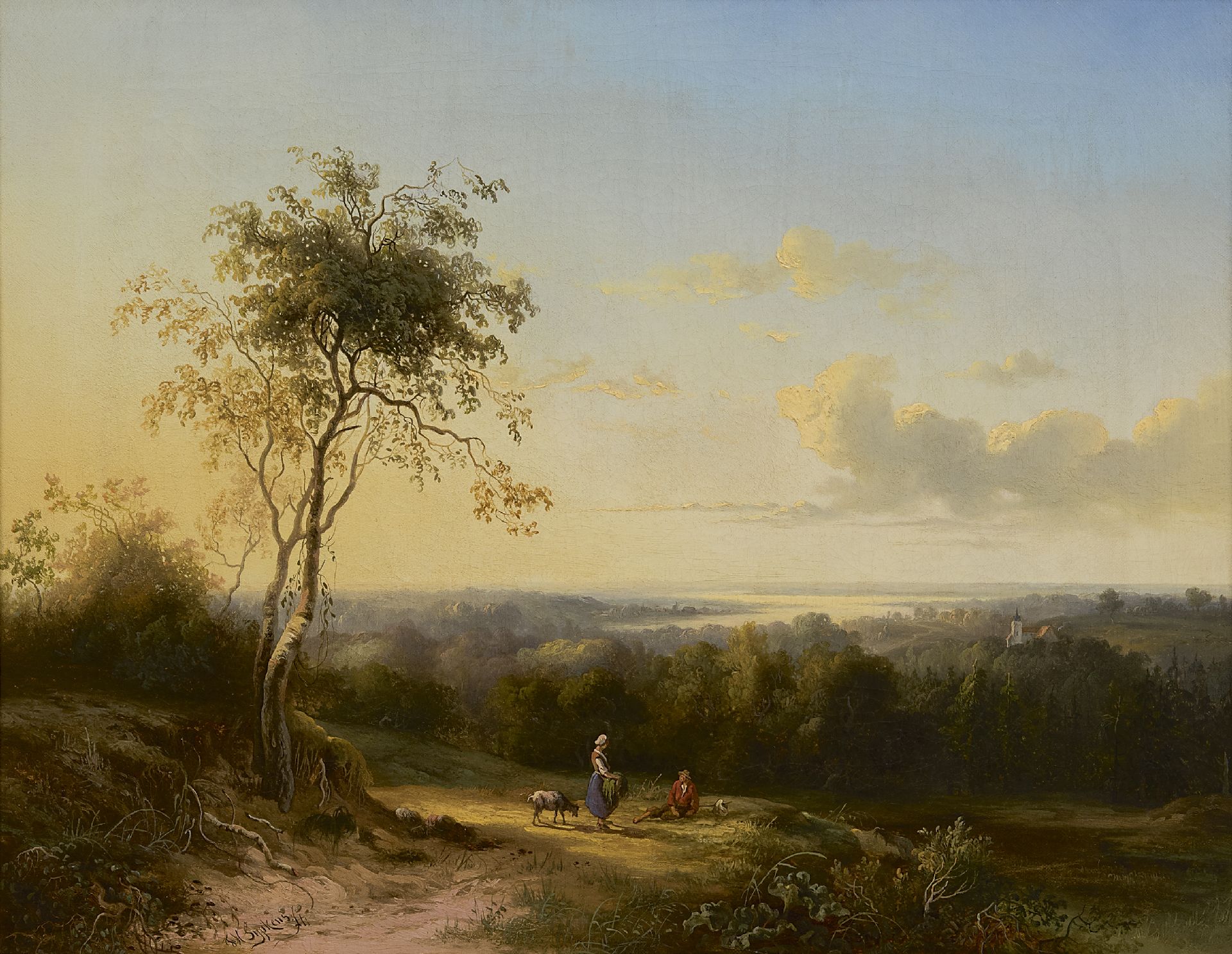Ferdinand Hendrik Sijpkens kunstwerk • schilderij • voorheen te koop Panoramisch landschap met herdersvolk