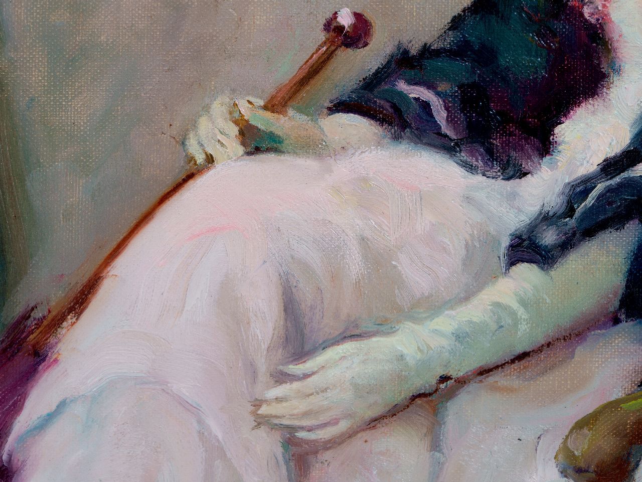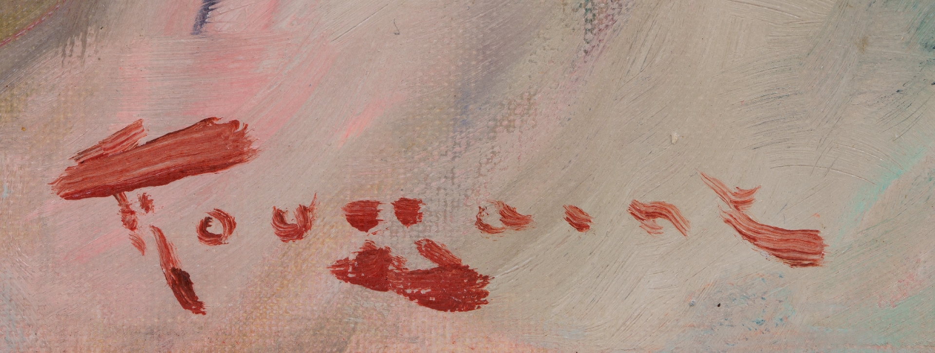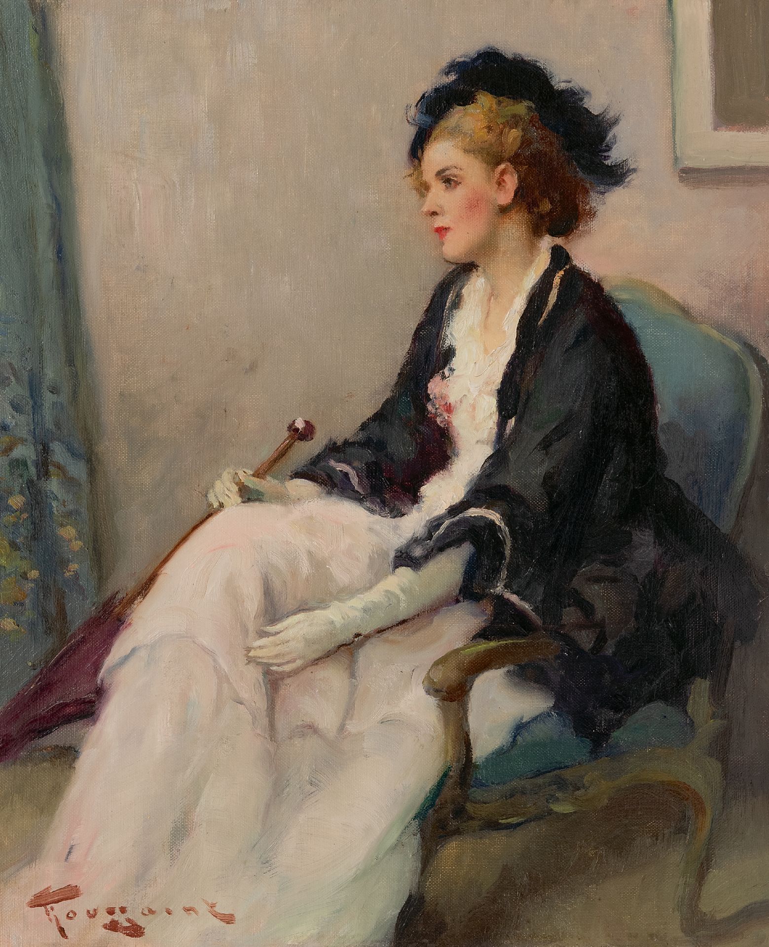De Belgische schilder Fernand Toussaint was een leerling van de destijds bekende portret- en historieschilder J.F. Portaels. Hij schilderde landschappen, bloemstillevens en vooral vrouwenportretten. Deze vielen bij tijdgenoten in de smaak om hun elegantie en informele opzet, in combinatie met sobere, stemmingsvolle kleuren en een losse, impressionistische weergave van het onderwerp.