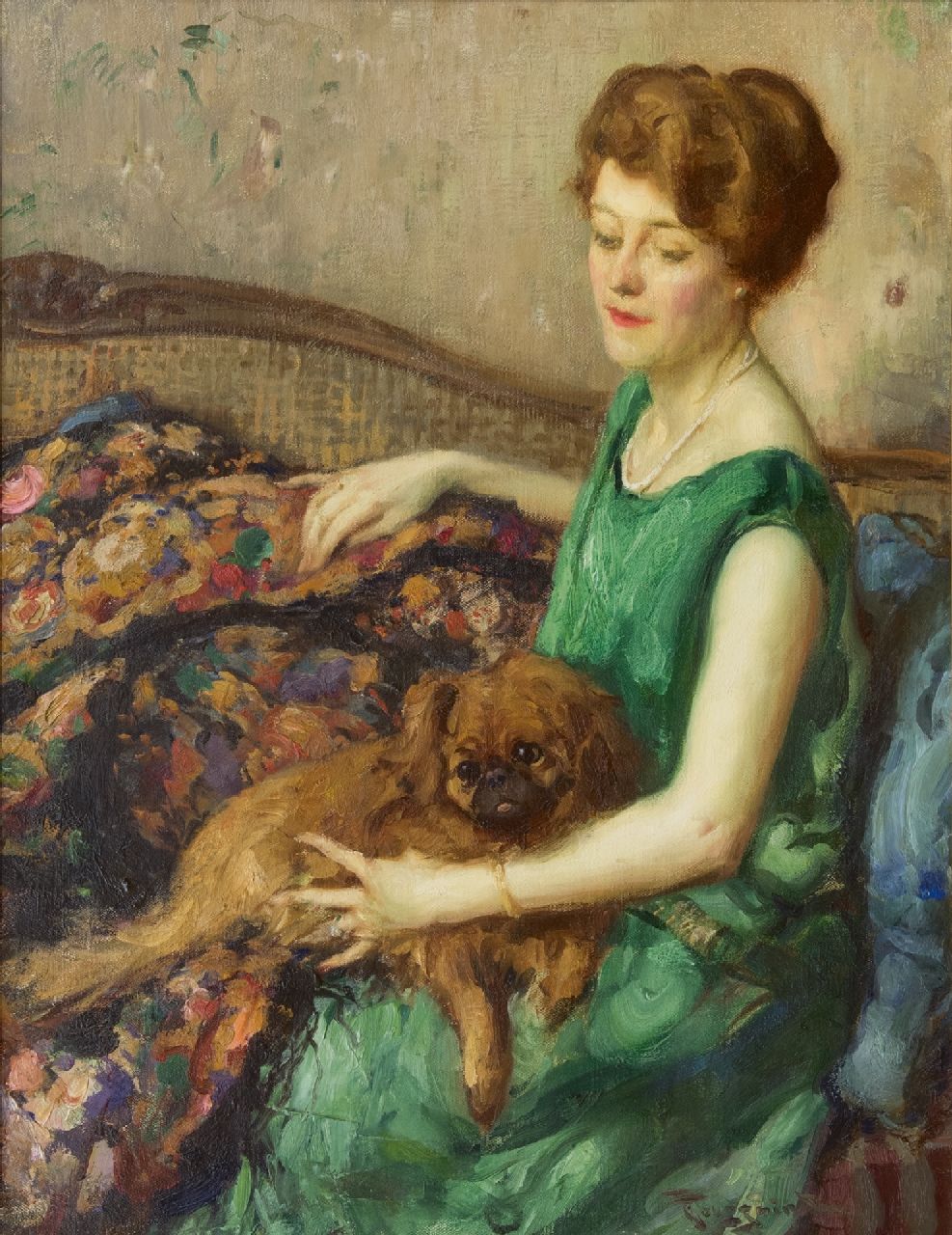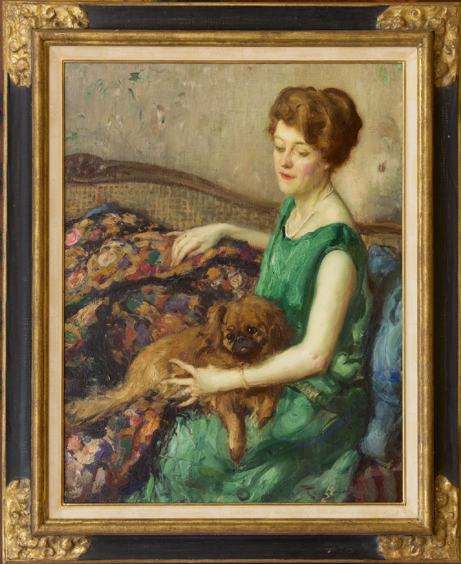 Fernand Toussaint kunstwerk • schilderij • te koop Vrouw in groene jurk
