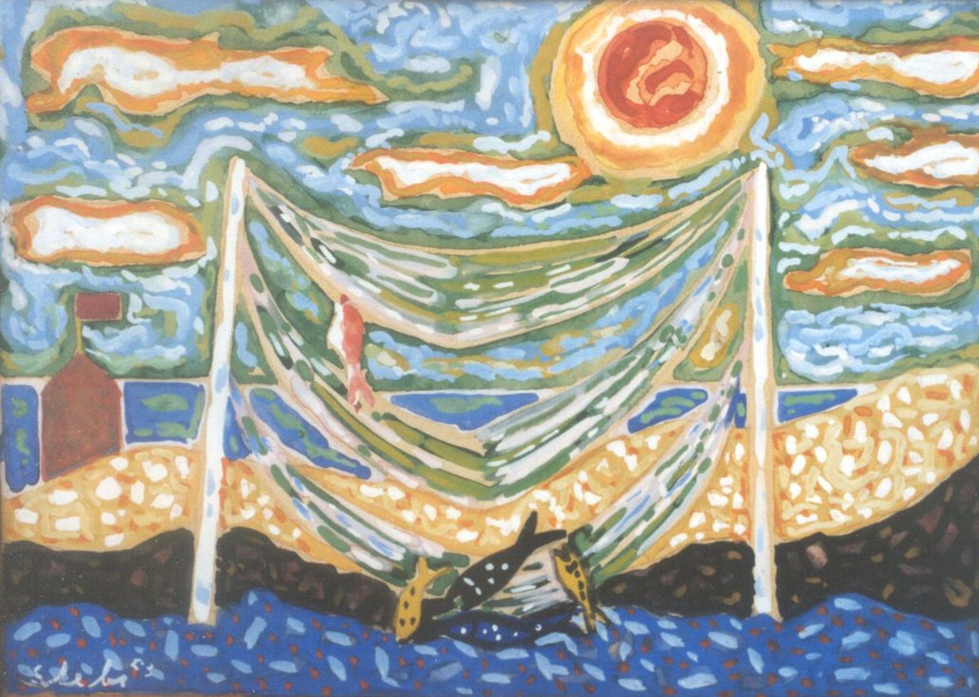 Ferry Slebe kunstwerk • aquarel • tekening • voorheen te koop Drogende netten