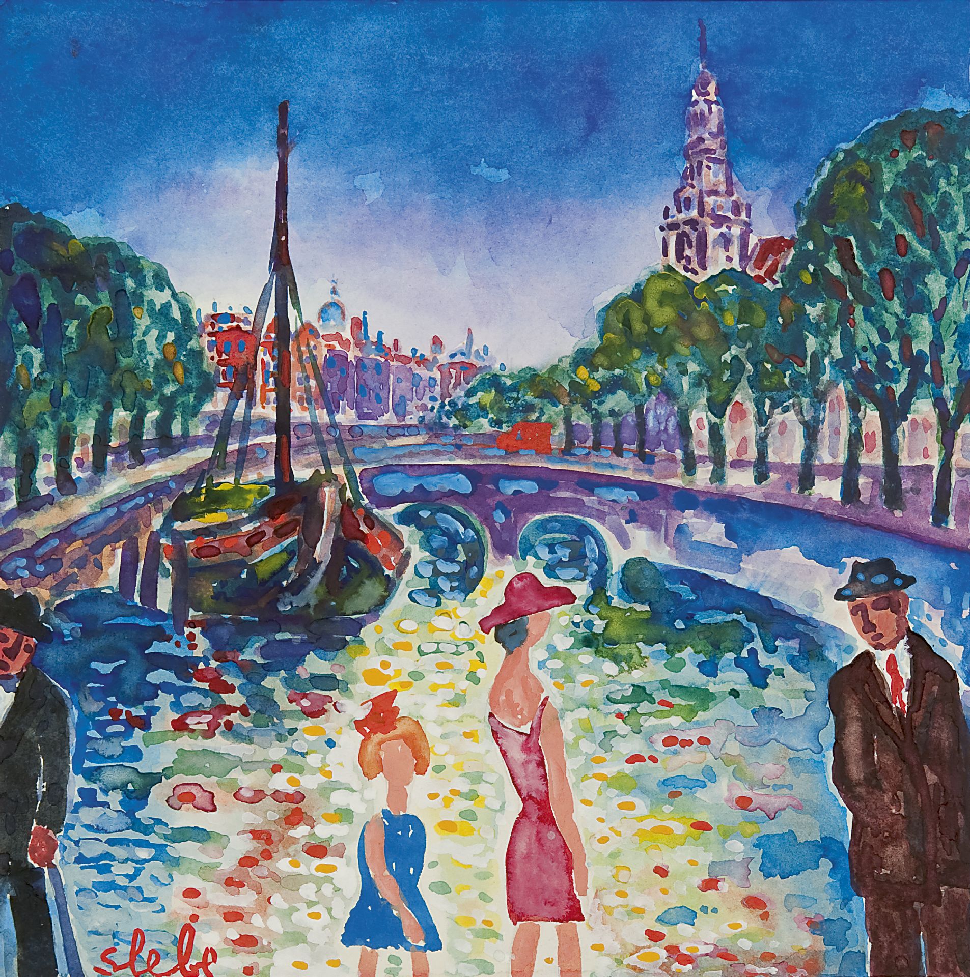 Ferry Slebe kunstwerk • aquarel • tekening • voorheen te koop Prinsengracht, Amsterdam