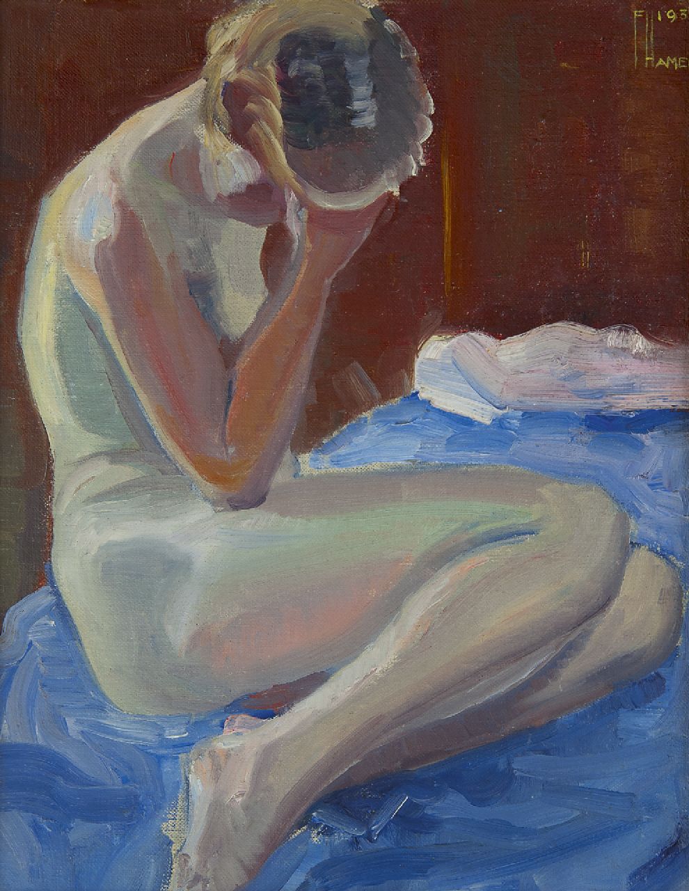 Flip Hamers kunstwerk • schilderij • voorheen te koop Zittend naakt