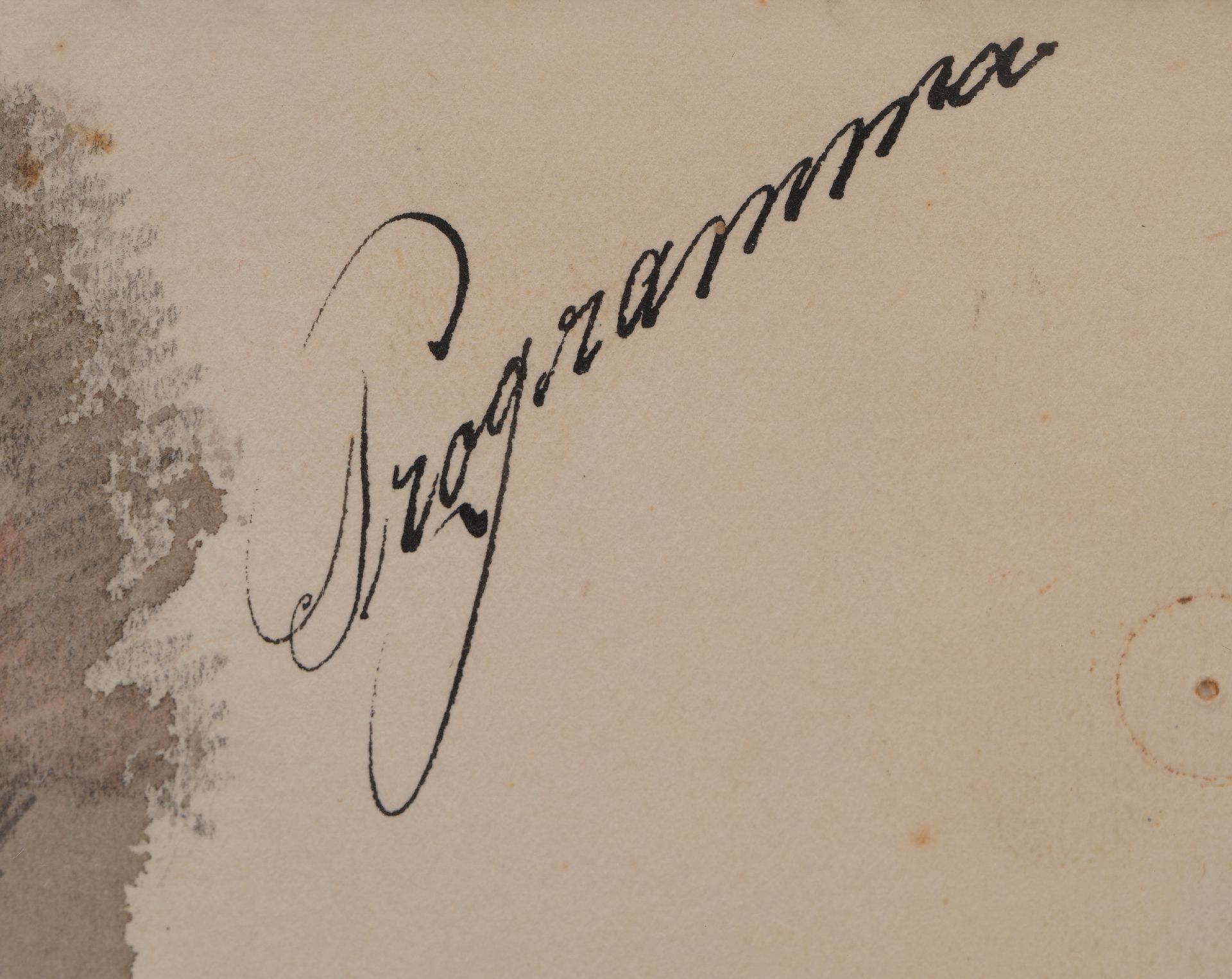 potlood, inkt en aquarel op papier 15,7 x 12,4 cm, gesigneerd links van het midden