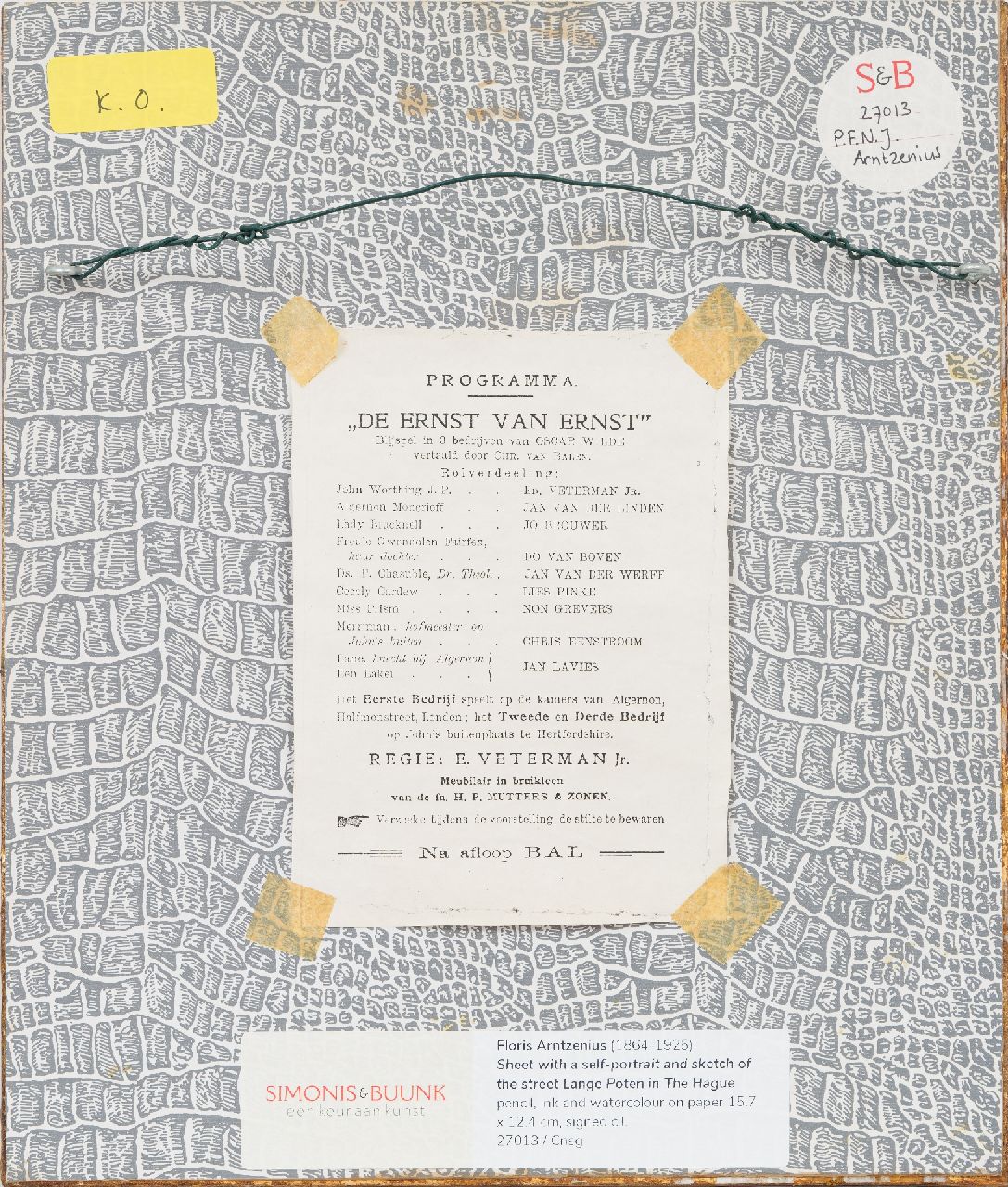 Floris Arntzenius kunstwerk • aquarel • tekening • voorheen te koop Blad met zelfportret en schets van de Lange Poten, Den Haag