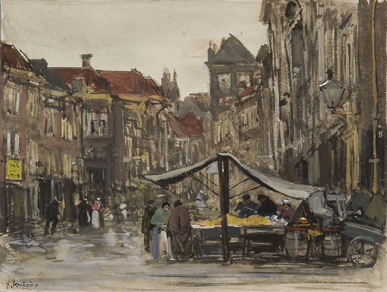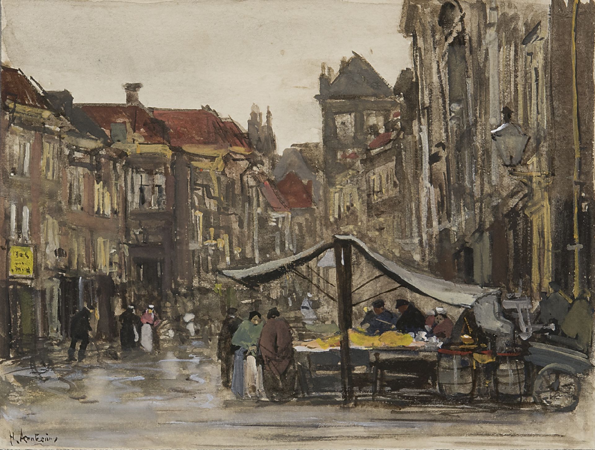 Floris Arntzenius kunstwerk • aquarel • tekening • voorheen te koop De Voldersgracht, Den Haag