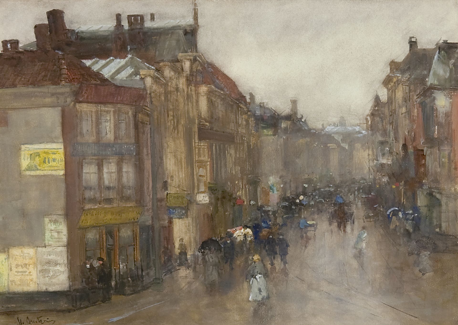 Floris Arntzenius kunstwerk • aquarel • tekening • voorheen te koop De Wagenstraat bij de Wagenbrug, Den Haag