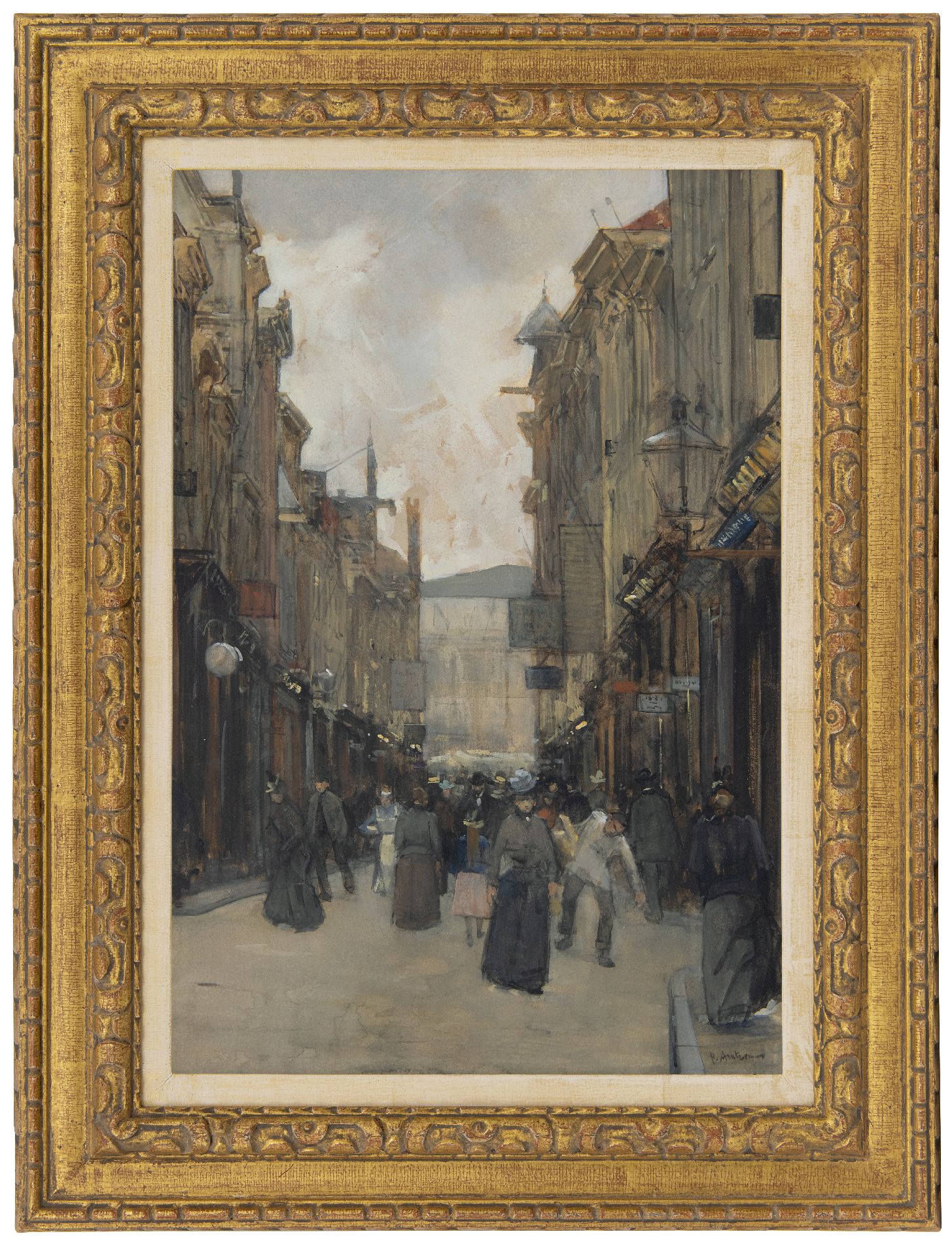 Floris Arntzenius | Drukbevolkte Spuistraat in Den Haag, aquarel op papier, 41,6 x 30,7 cm, gesigneerd l.o.