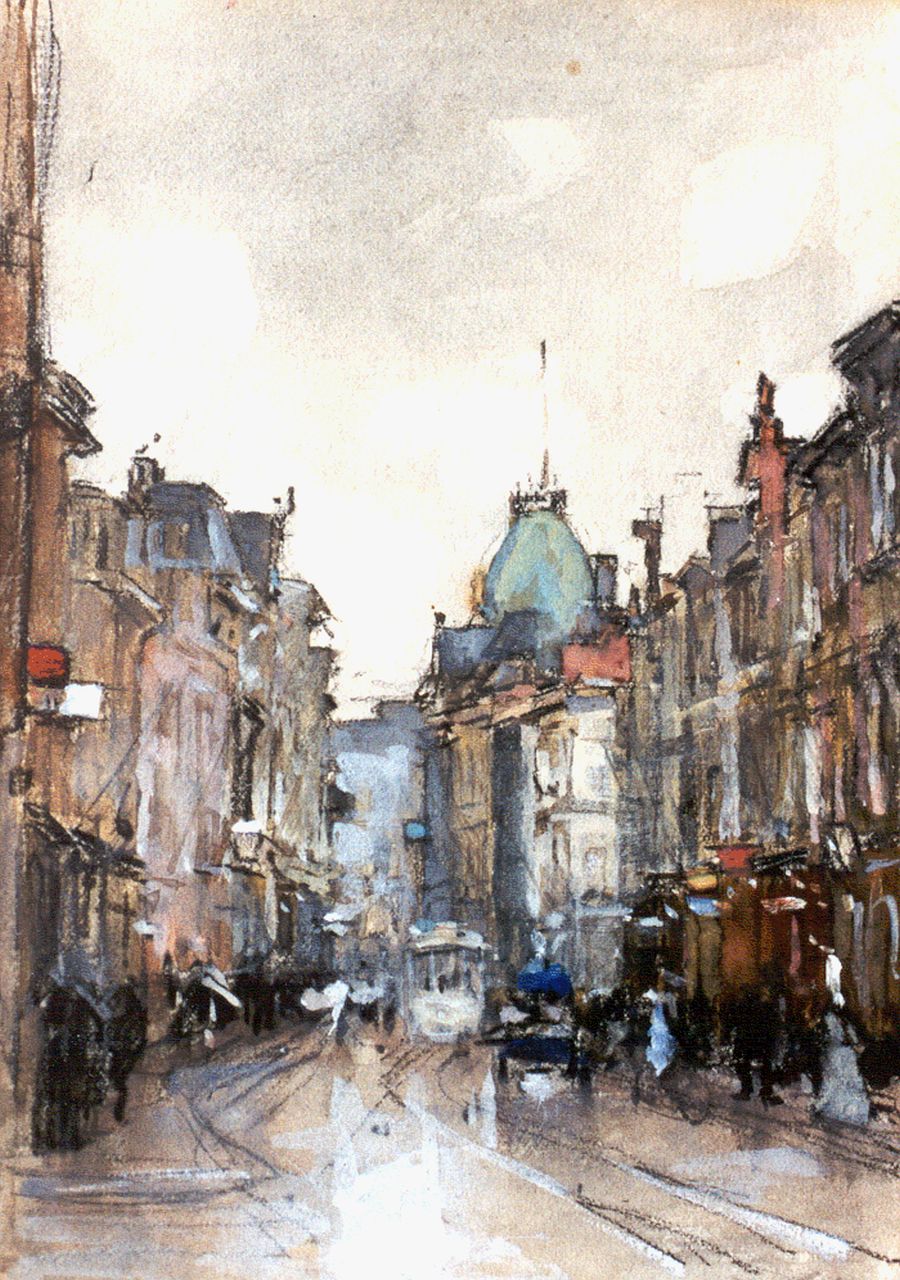 Floris Arntzenius | Drukbevolkte Spuistraat in Den Haag, aquarel op papier, 41,6 x 30,7 cm, gesigneerd l.o.