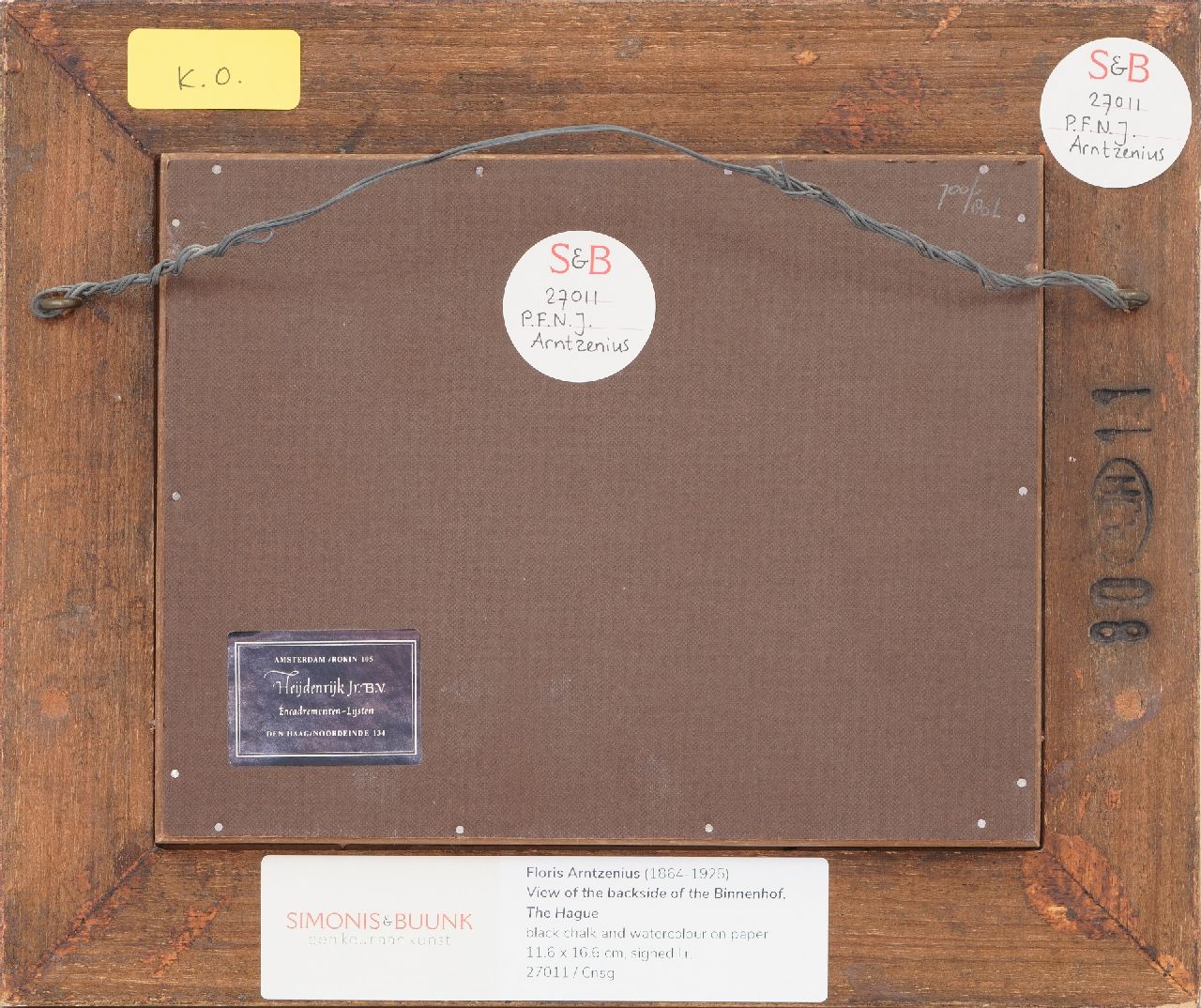 Floris Arntzenius kunstwerk • aquarel • tekening • te koop Gezicht op achterzijde Binnenhof, Den Haag