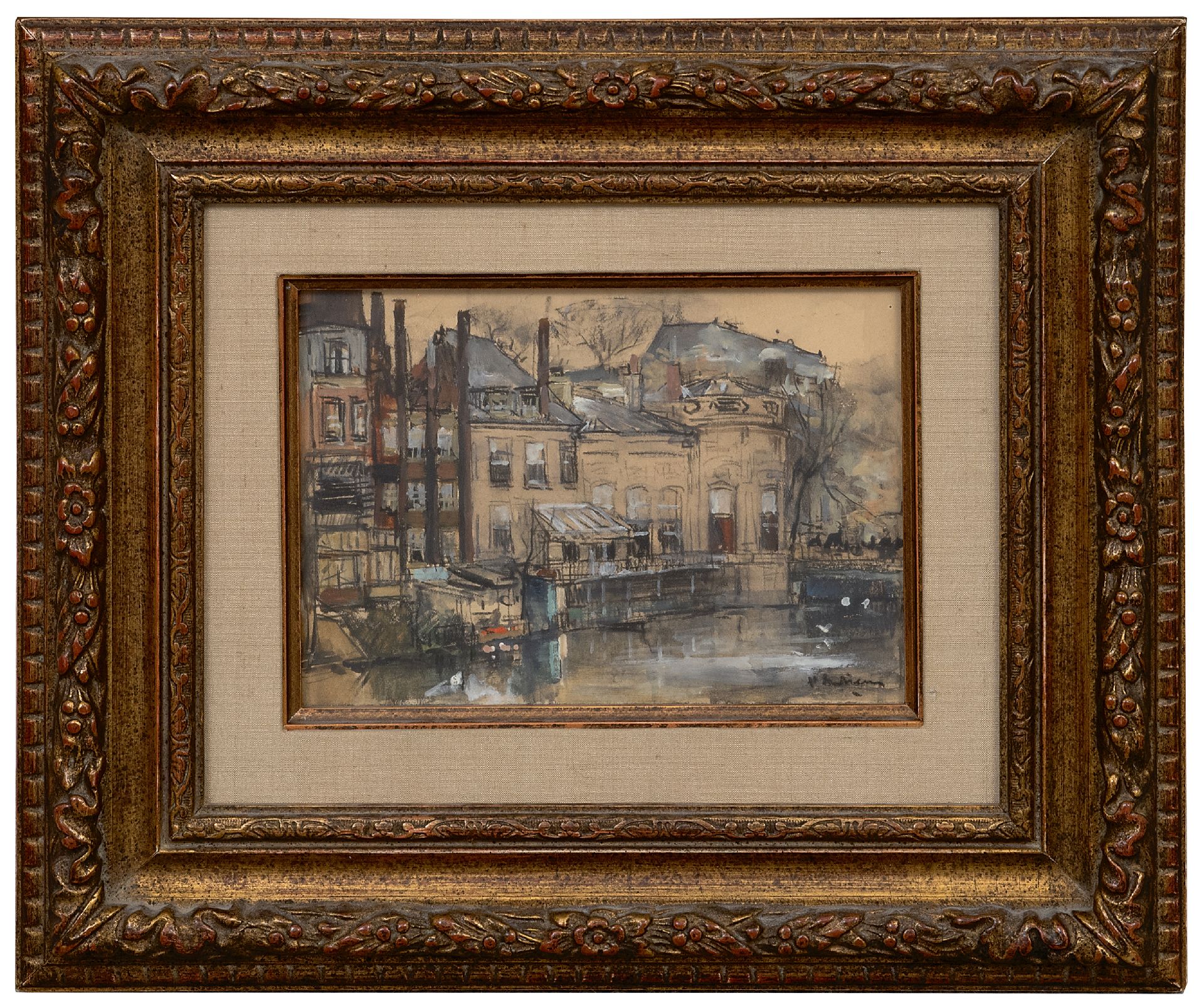 Floris Arntzenius kunstwerk • aquarel • tekening • te koop Gezicht op achterzijde Binnenhof, Den Haag