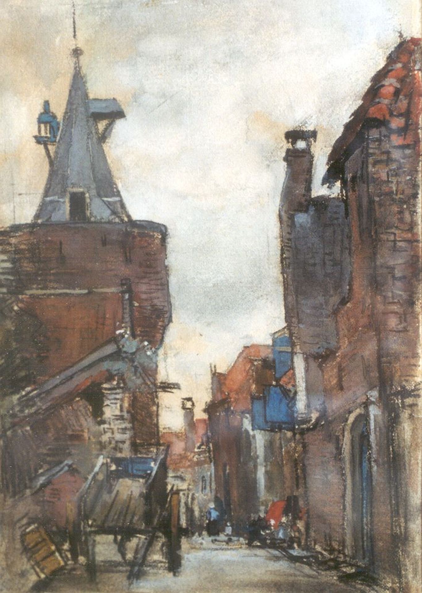 Floris Arntzenius kunstwerk • aquarel • tekening • voorheen te koop Gezicht op de Vispoort te Elburg