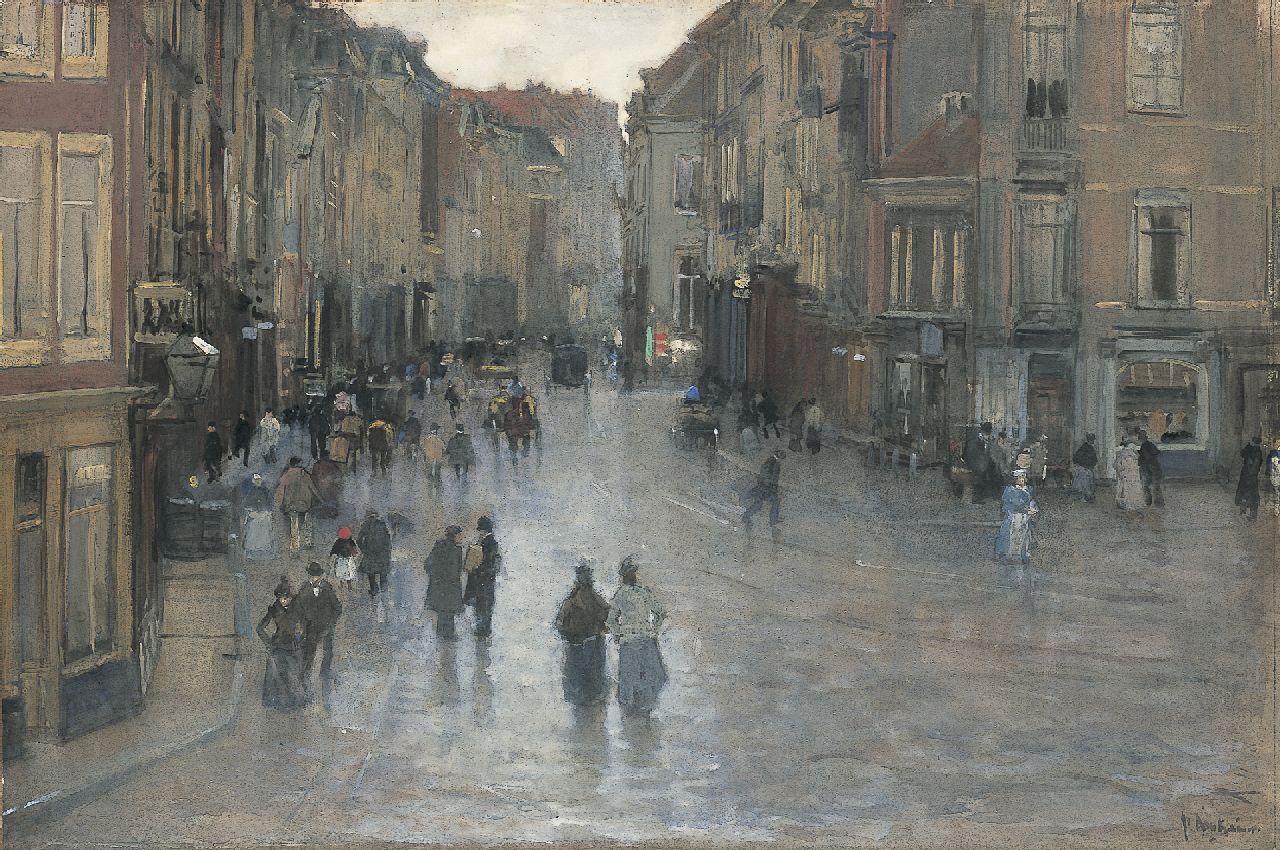 Floris Arntzenius kunstwerk • aquarel • tekening • voorheen te koop Gezicht op de Wagenstraat in Den Haag, gezien vanaf de Wagenbrug