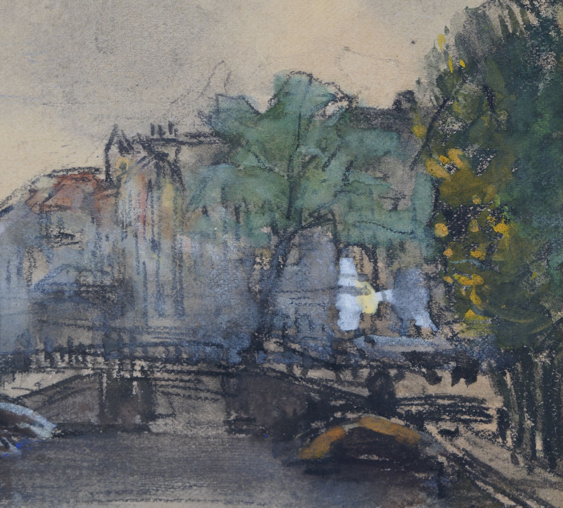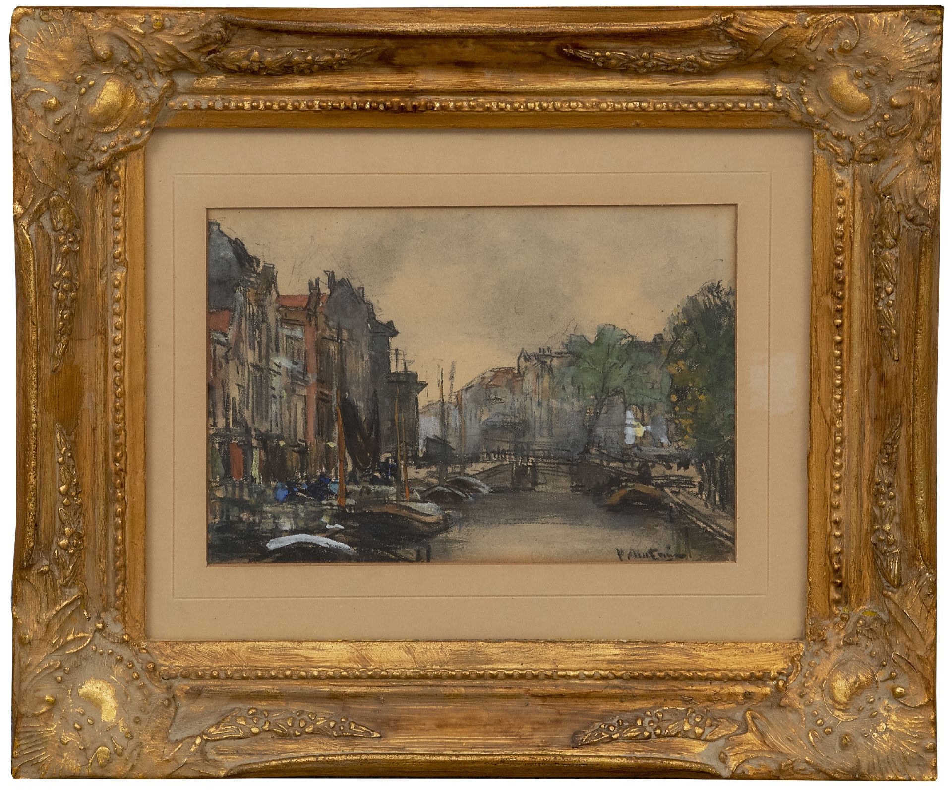 Floris Arntzenius kunstwerk • aquarel • tekening • voorheen te koop Gezicht op een grachtje