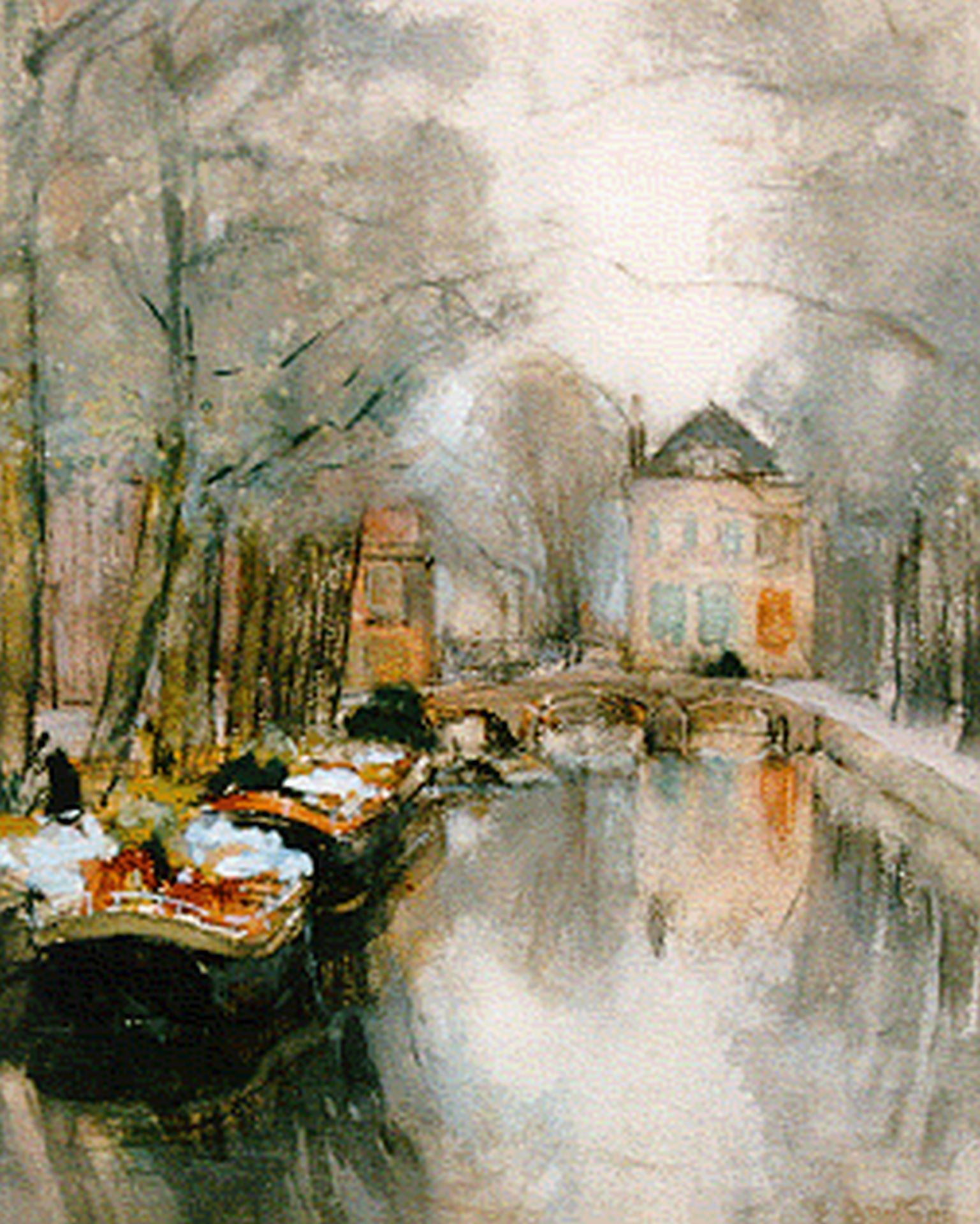 Floris Arntzenius kunstwerk • aquarel • tekening • voorheen te koop Het Smitswater met bloemschuiten in Den Haag