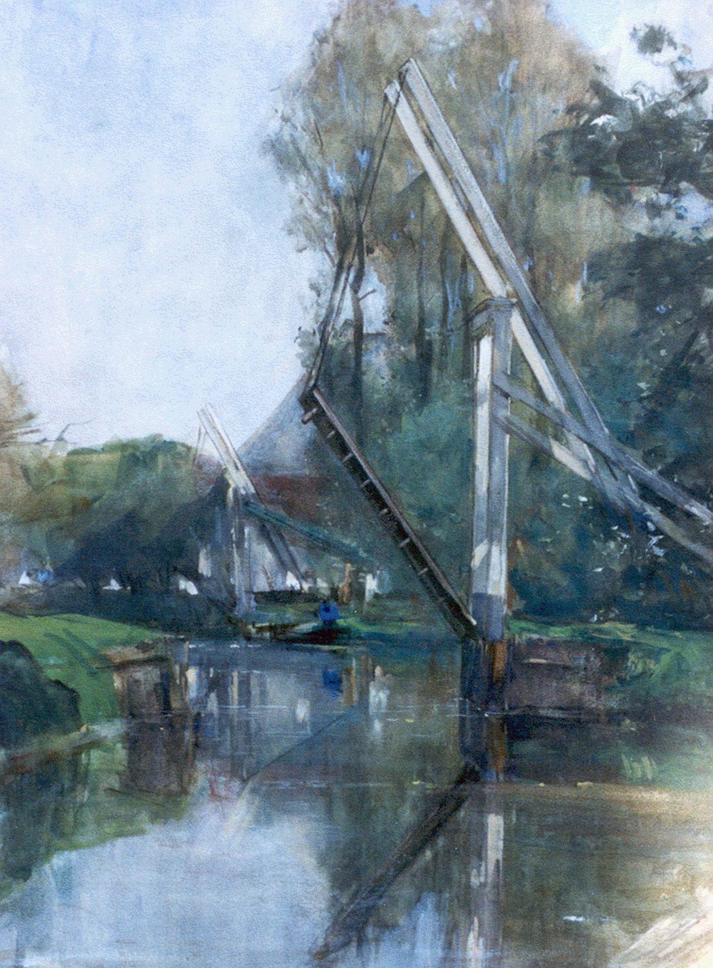 Floris Arntzenius kunstwerk • aquarel • tekening • voorheen te koop Vaart met ophaalbrug
