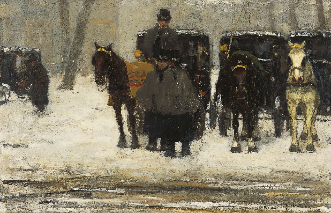 Floris Arntzenius kunstwerk • schilderij • voorheen te koop Huurkoetsen in de sneeuw