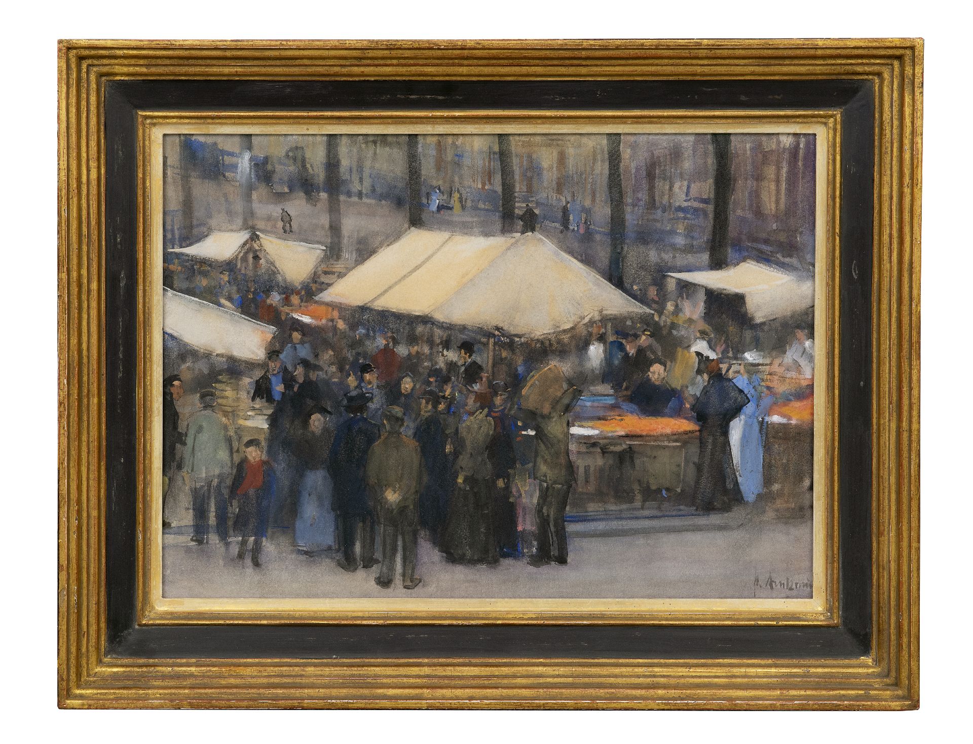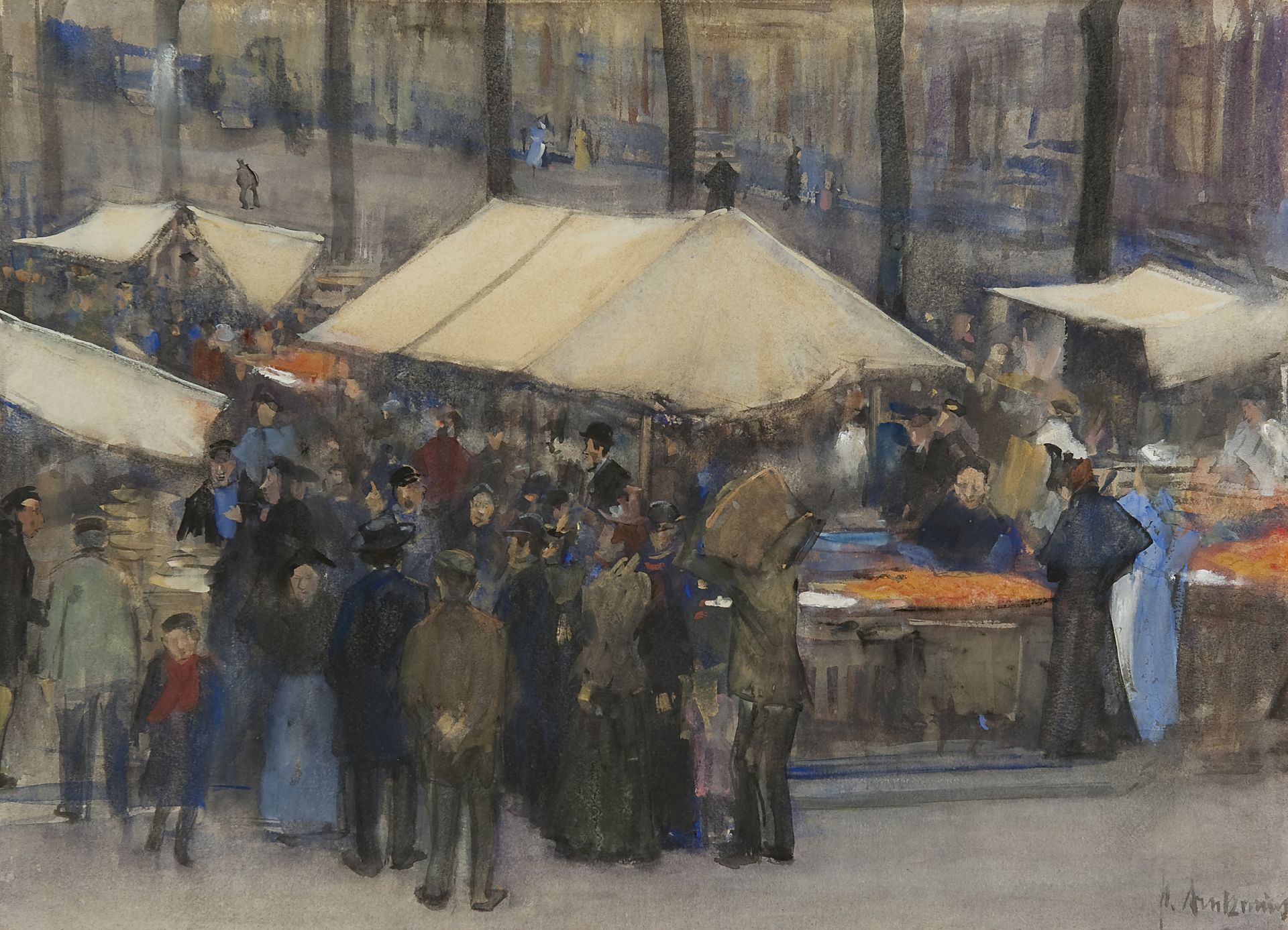 Floris Arntzenius kunstwerk • aquarel • tekening • te koop Markt op de Prinsegracht in Den Haag