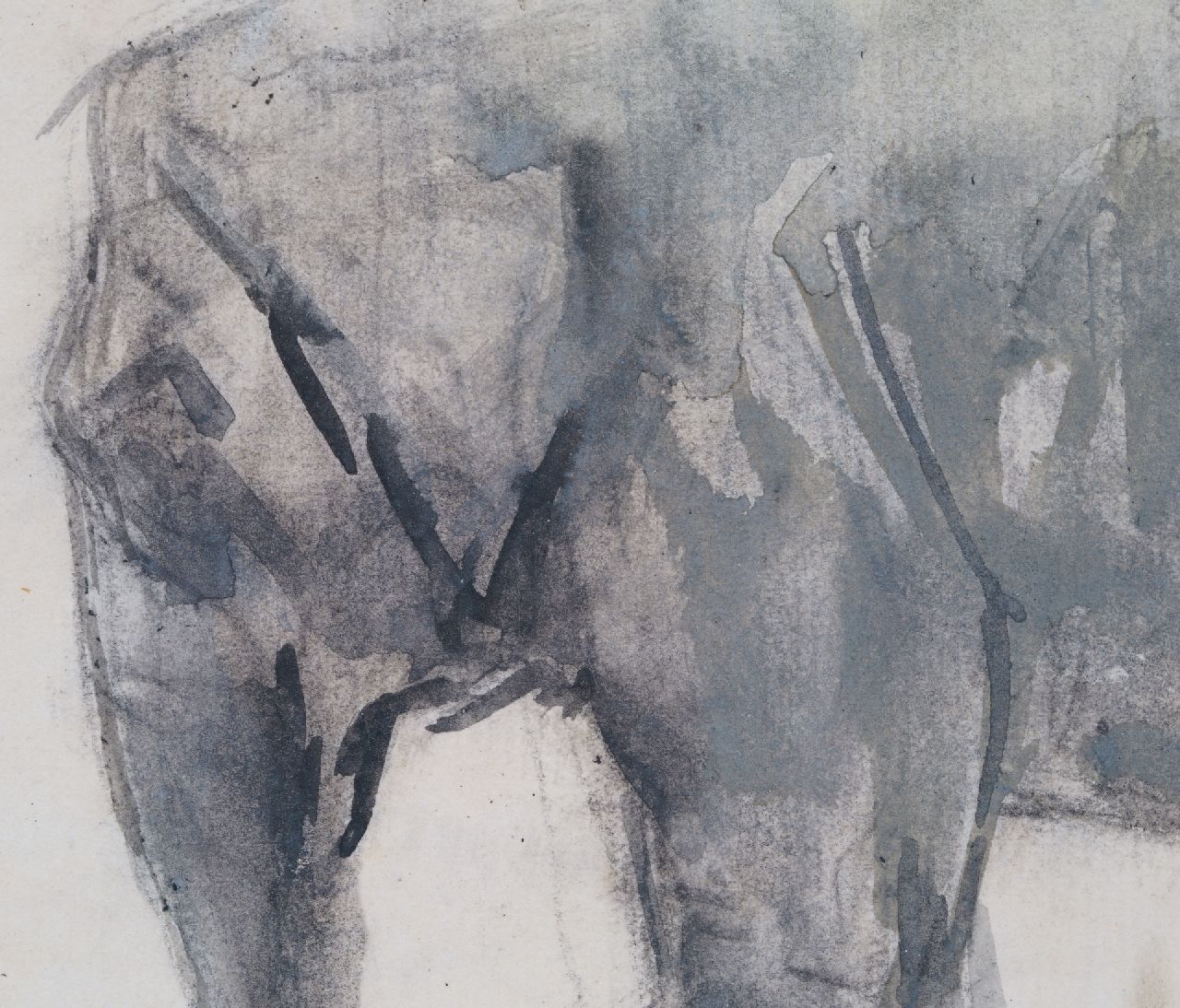 zwart krijt en gouache op papier 12,7 x 18,4 cm