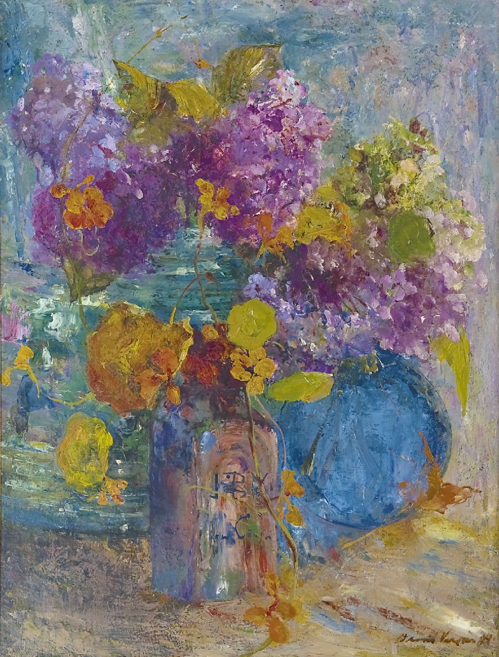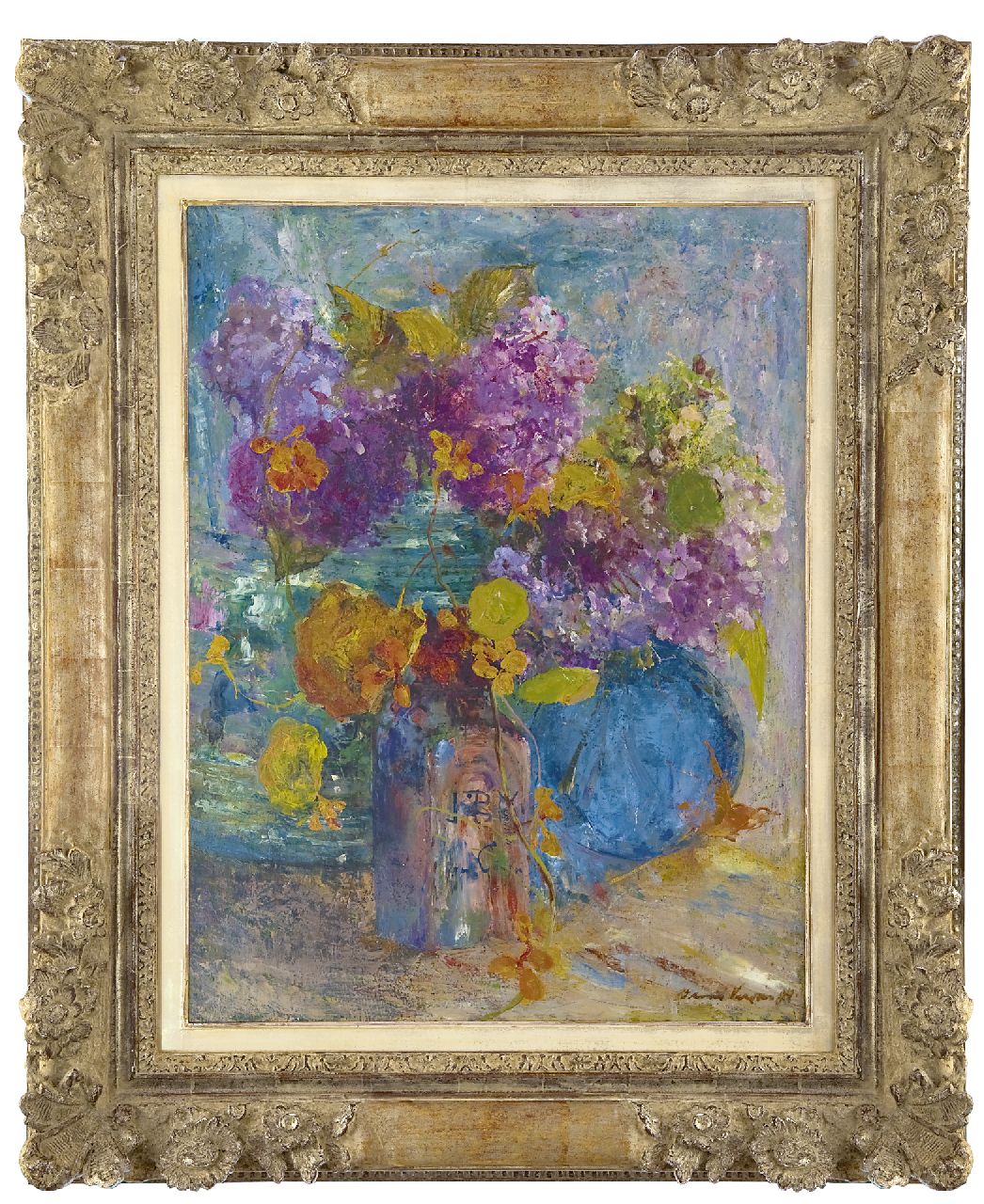 Floris Verster kunstwerk • schilderij • voorheen te koop Flessen met Oost-Indische kers en hortensia's