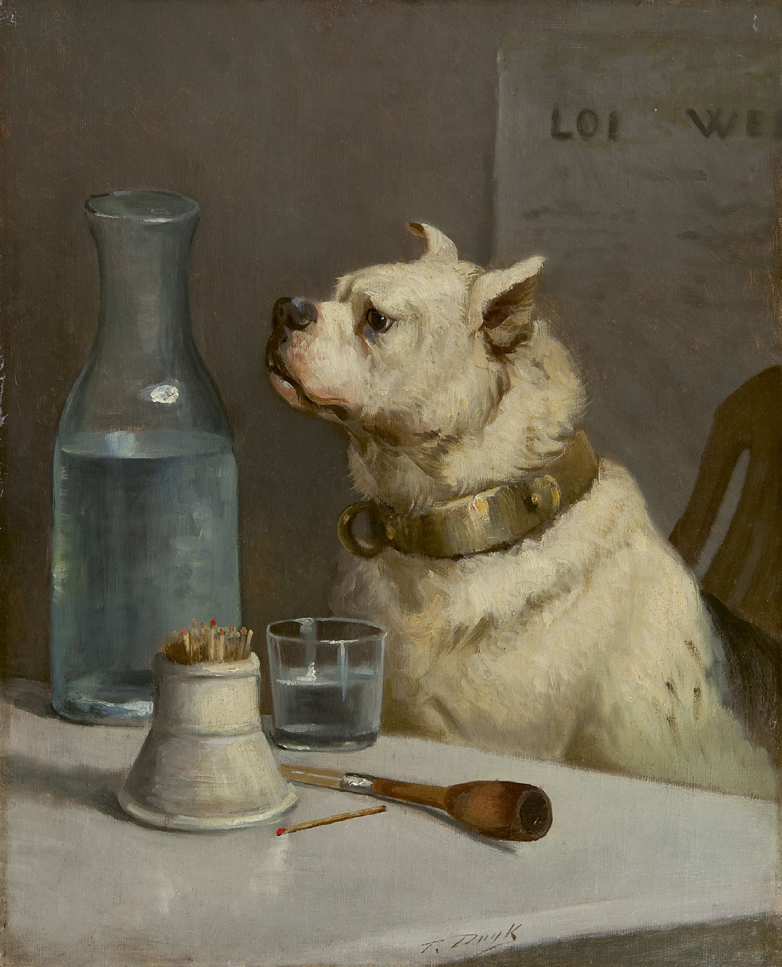 François Duyk kunstwerk • schilderij • voorheen te koop Hond met een neus voor drank