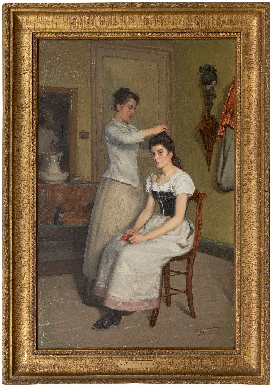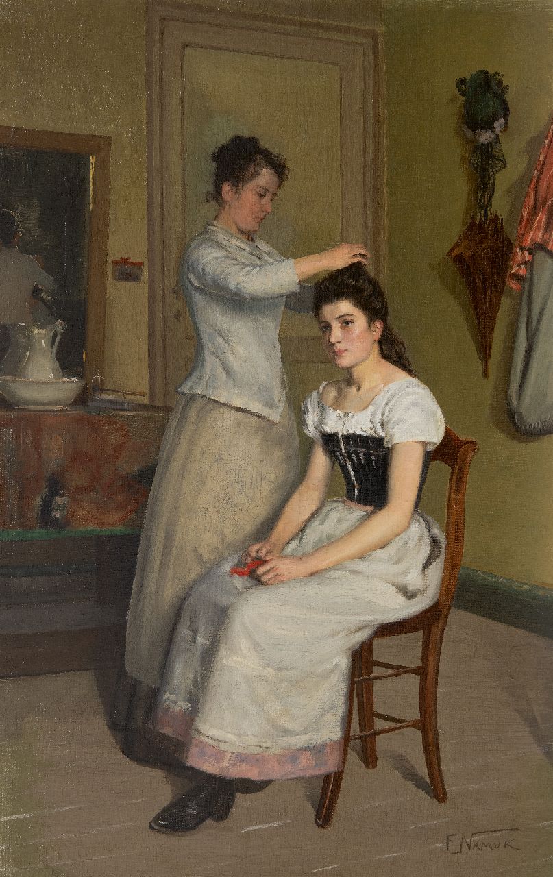François Namur kunstwerk • schilderij • voorheen te koop Het opsteken van het haar