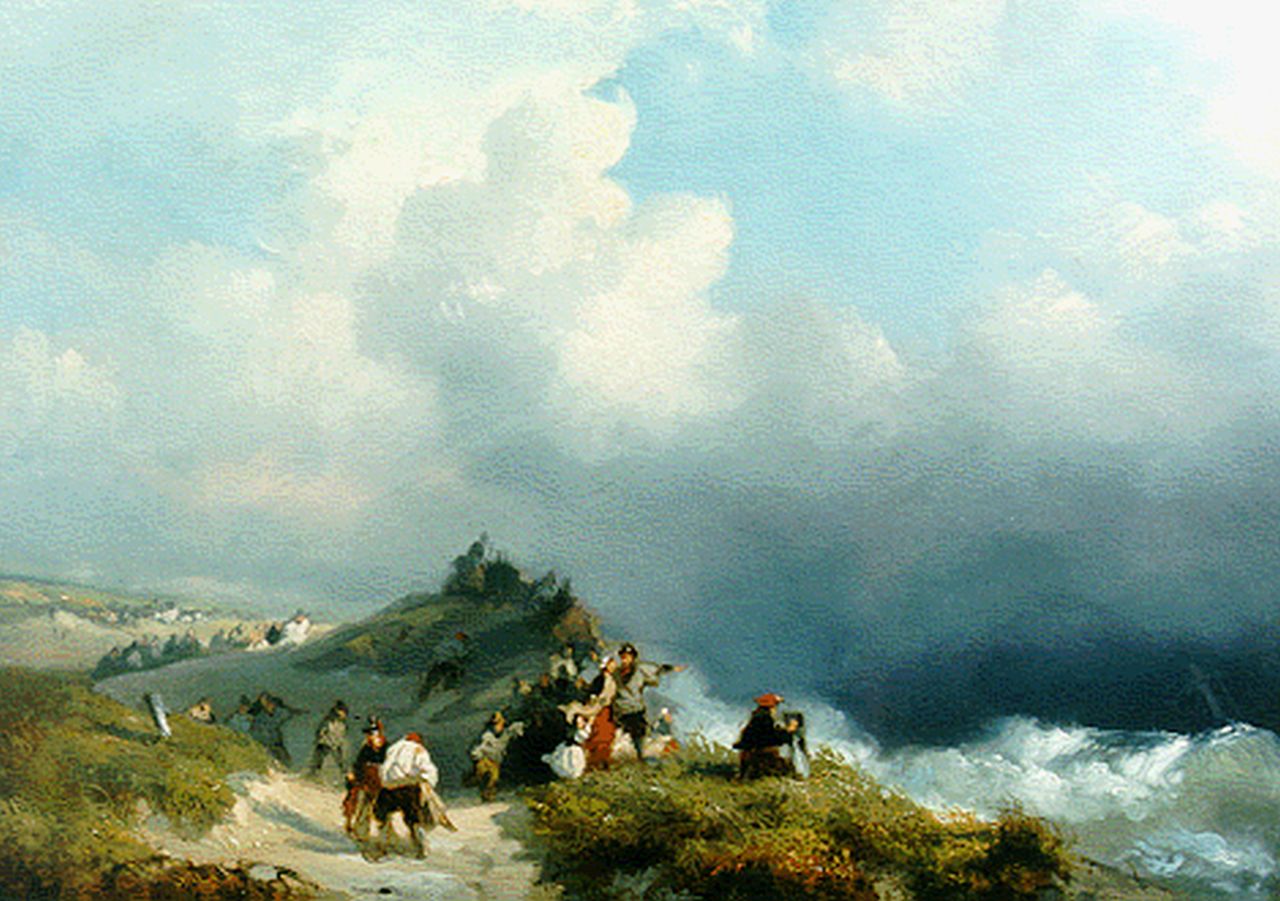 Frans Arnold Breuhaus de Groot kunstwerk • schilderij • voorheen te koop Bevolking op het duin, kijkend naar een schip in nood