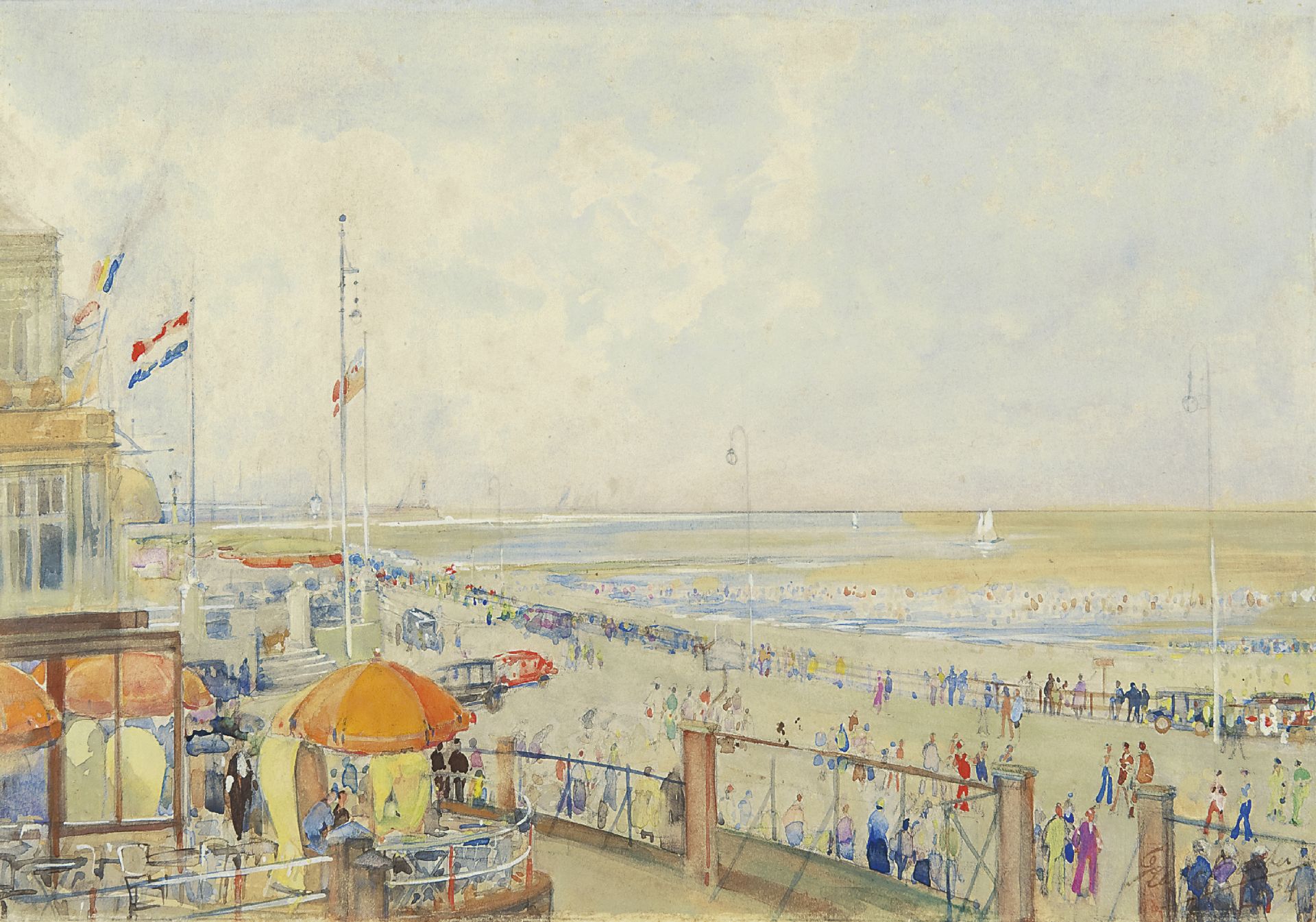 Frans Bakker kunstwerk • aquarel • tekening • voorheen te koop Zomers Scheveningen